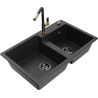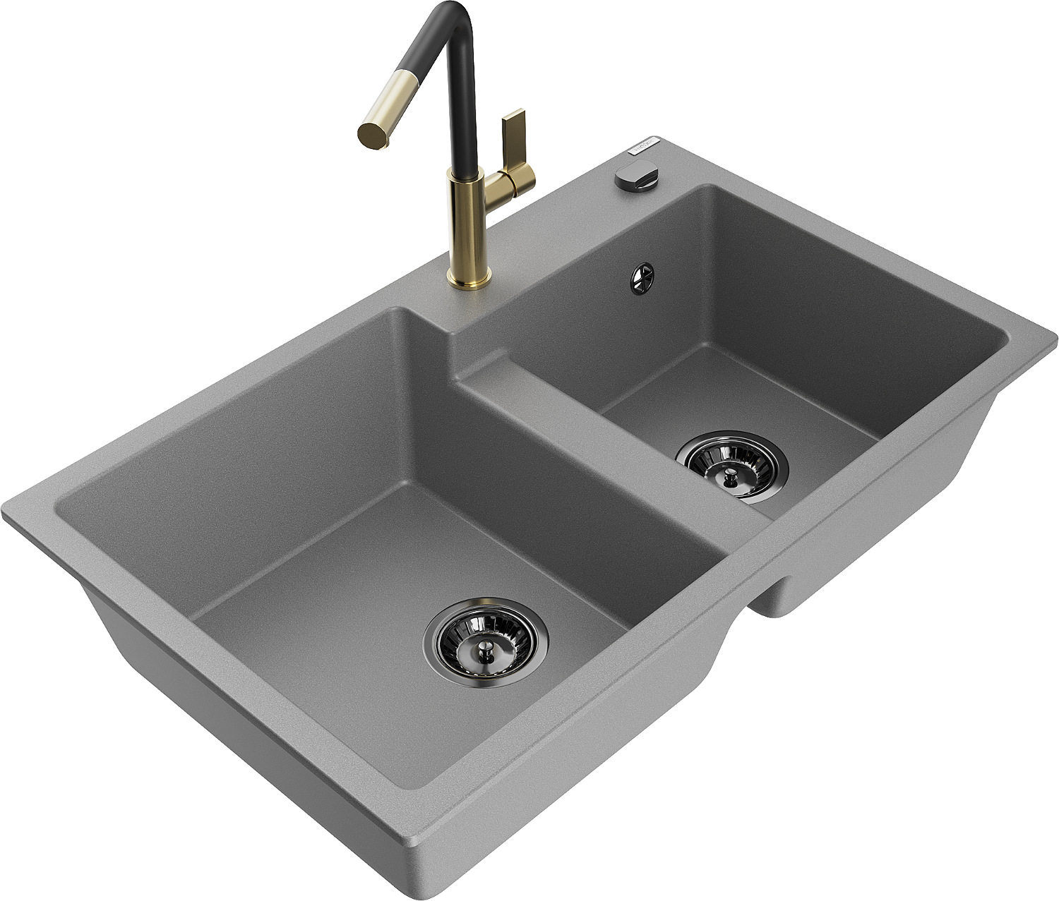 Mexen Tomas granito plautuvė 2 skyrių su virtuviniu maišytuvu Flora, pilka - 6516-71-670401-57-B