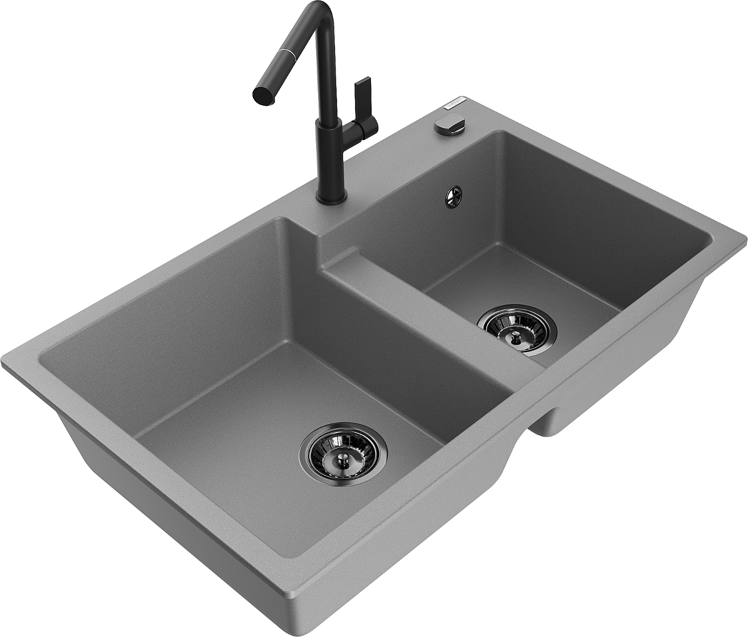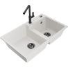 Mexen Tomas granitinė dviejų dalių virtuvinė kriauklė su Flora maišytuvu, pilka - 6516-71-670401-70-B