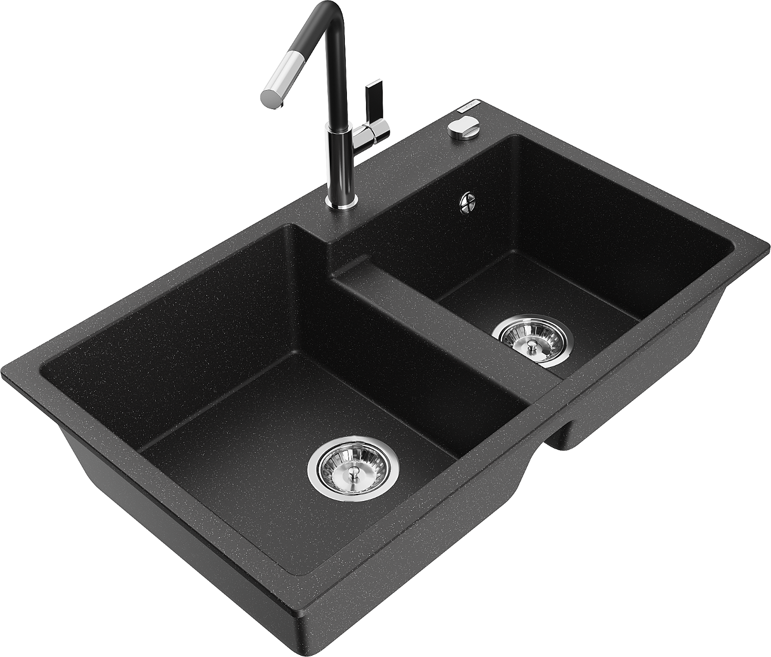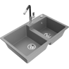 Mexen Tomas dviejų skyrių granitinis plautuvas su Flora virtuvės maišytuvu, juodas/sidabrinis metalikas - 6516-73-670401-07