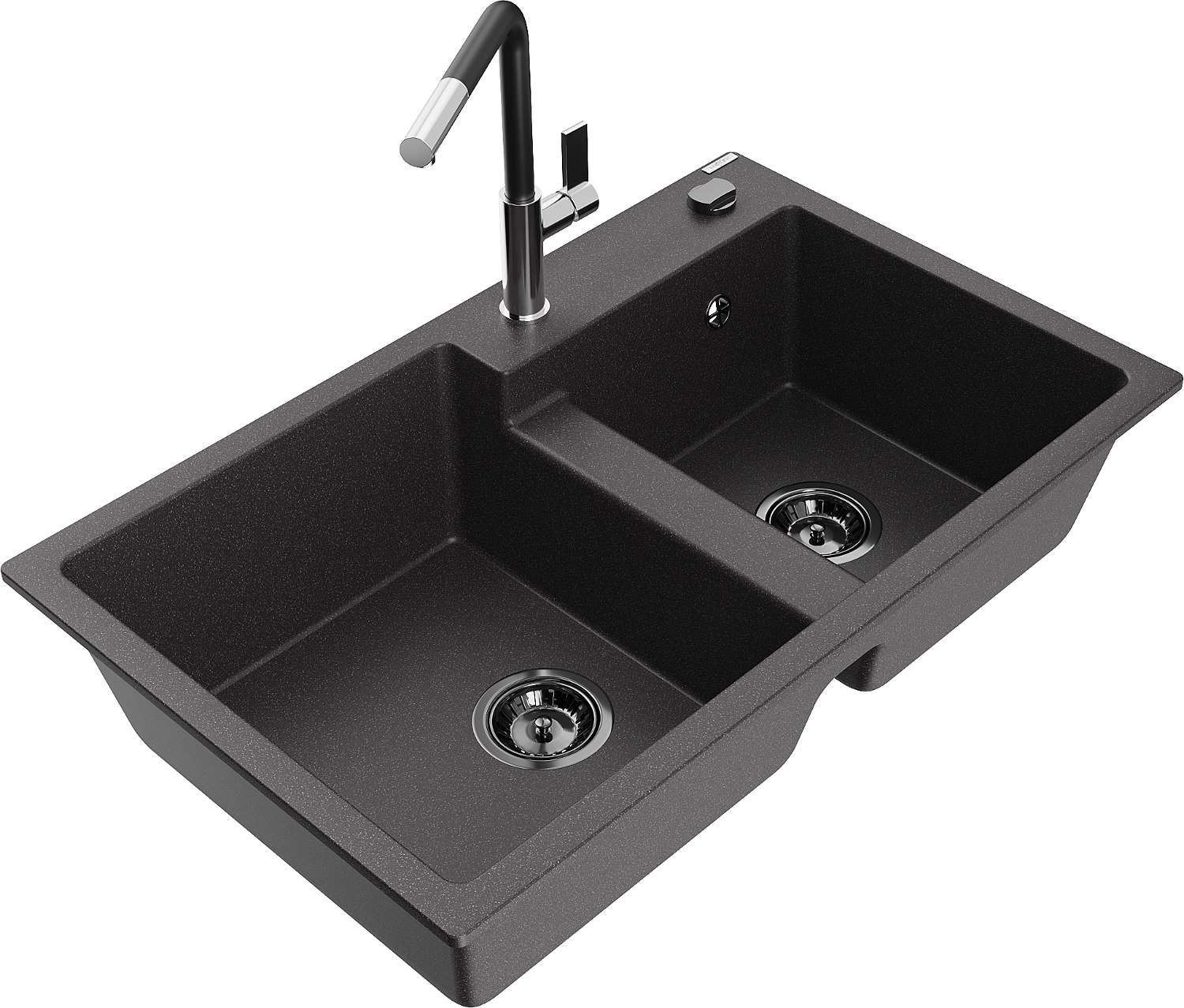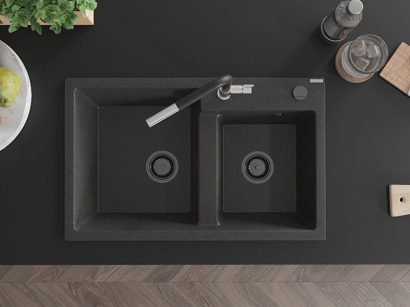 Mexen Tomas granito plautuvė 2 skyrių su Flora virtuviniu maišytuvu, juodas taškuotas - 6516-76-670401-07-B