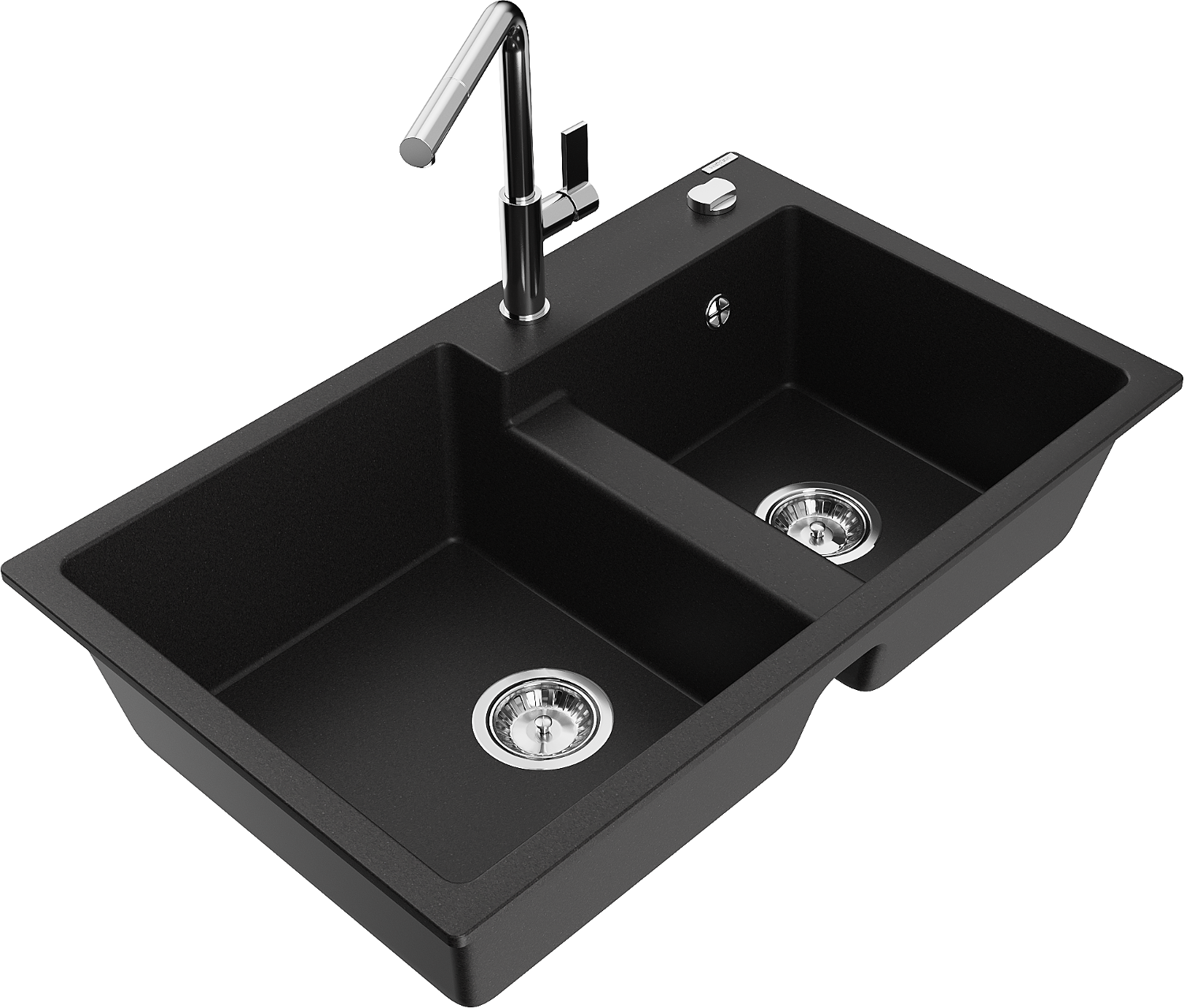 Mexen Tomas granito plautuvė 2 skyrių su virtuvės maišytuvu Flora, juodas - 6516-77-670401-00