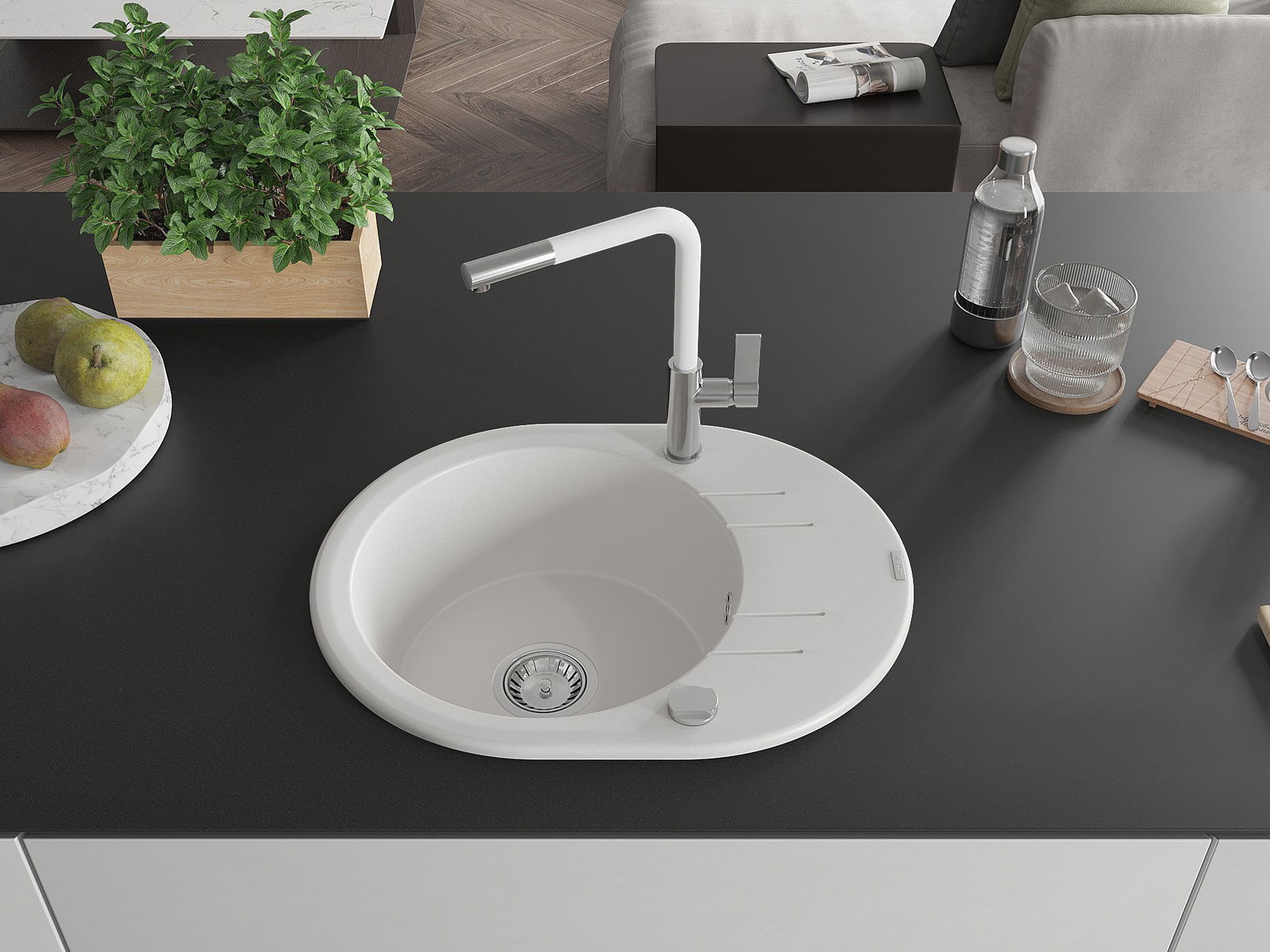 Kriauklės paviršius yra atsparus dėmėms ir spalvos pokyčiams, todėl jį lengva prižiūrėti ir jis išlaiko savo spalvą ilgą laiką. Estetiškai ir praktiškai papildo kiekvieną virtuvę.