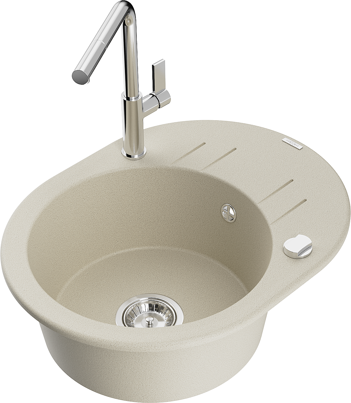 Mexen Kevin granitinė vienos kameros plautuvė su nuvarvėjimo paviršiumi ir Flora virtuviniu maišytuvu, smėlio spalvos
