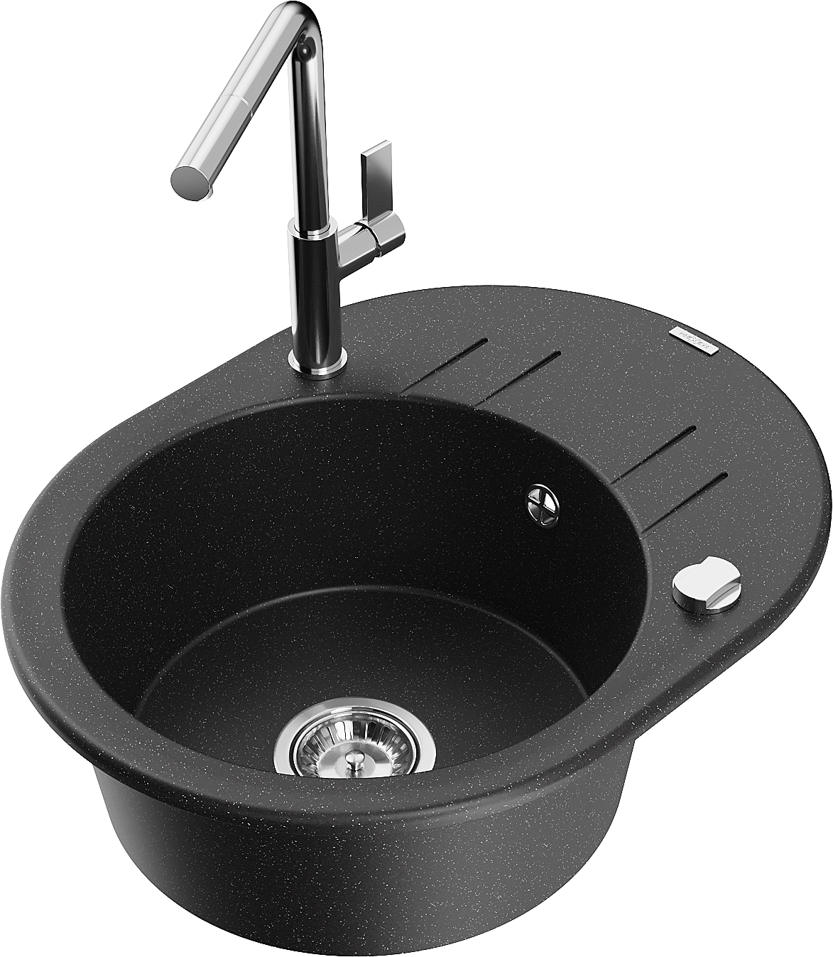 Mexen Kevin granitinis plautuvė 1 skyrius su nubėgimu ir virtuviniu maišytuvu Flora, juodas/sidabrinis metalikas - 6517-73-6704?