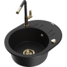 Mexen Kevin vienos plautuvės granitinis kriauklė su nutekamu ir Flora virtuviniu maišytuvu, juodas/auksinis metalikas - 6517-75?