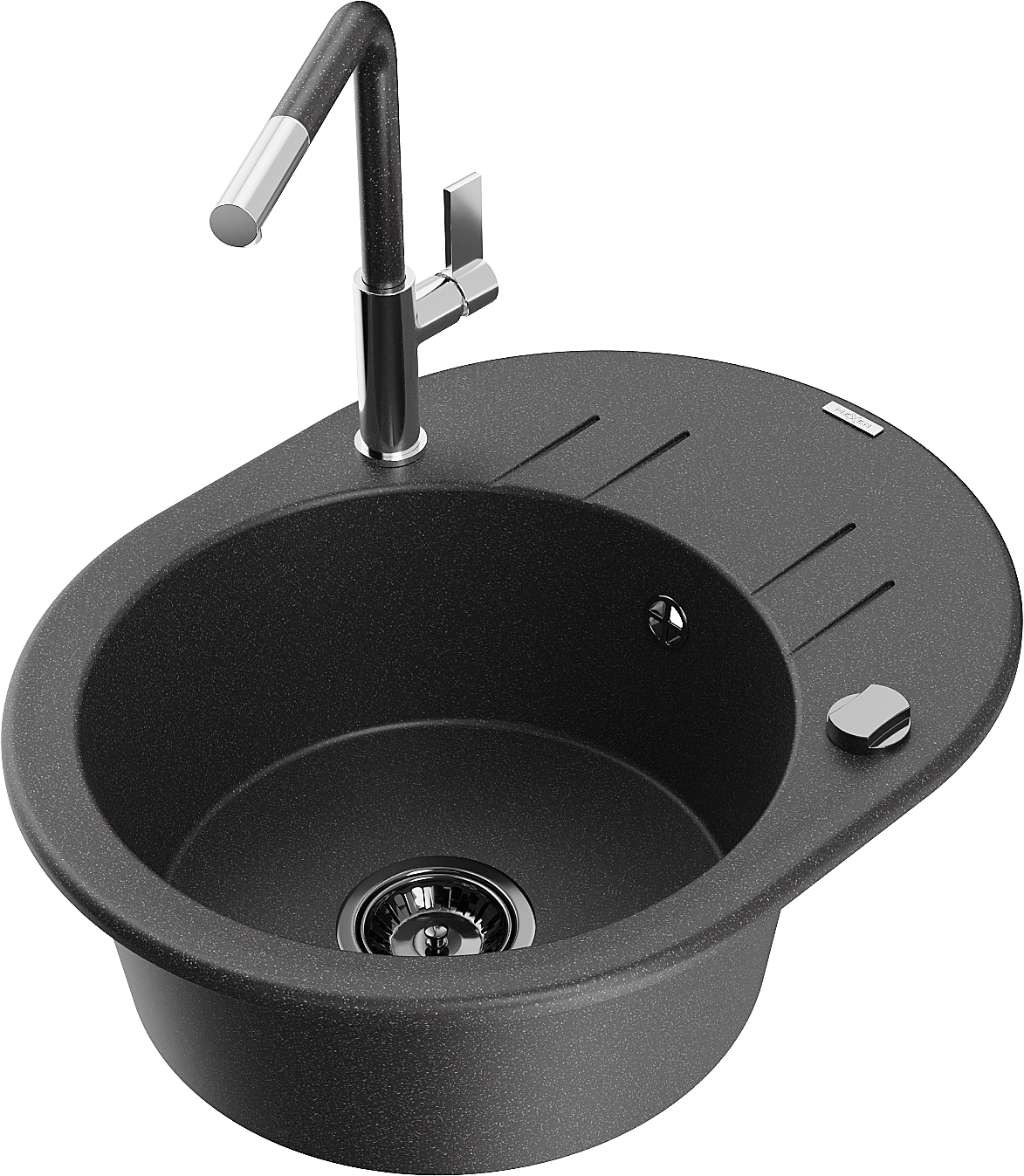 Mexen Kevin granito plautuvė su viena kamera ir nutekėjimo plokštele bei Flora virtuviniu maišytuvu, juoda su taškeliais - 6517?
