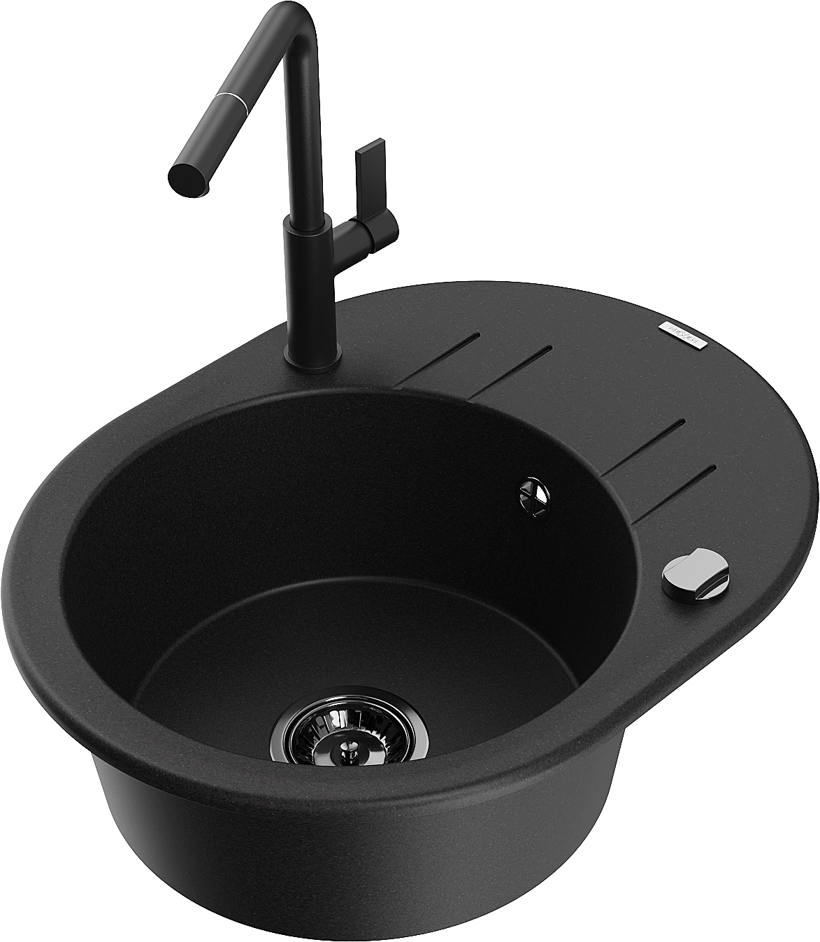 Mexen Kevin granitinis plautuvas su viena kamera, nusausintuvu ir Flora virtuviniu maišytuvu, juodas - 6517-77-670401-70-B