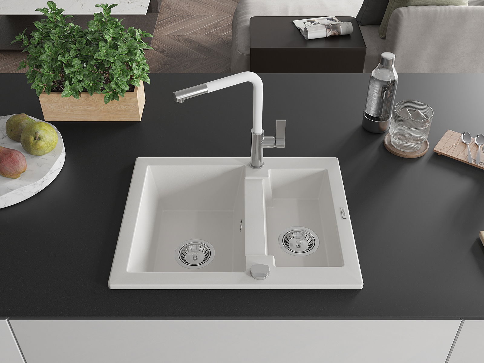 Kriauklės paviršius yra atsparūs dėmėms ir spalvos pasikeitimui, dėl kurio lengva valyti ir ilgą laiką išlaikyti savo spalvą. Estetinis ir praktiškai papildantis kiekvieną virtuvę.