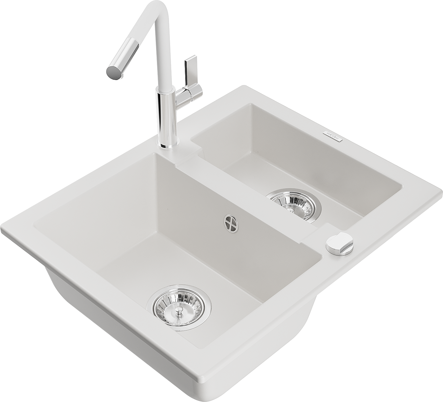 Mexen Carlos granito plautuvė 1,5 dubens su virtuviniu maišytuvu Flora, balta - 6518-20-670401-02