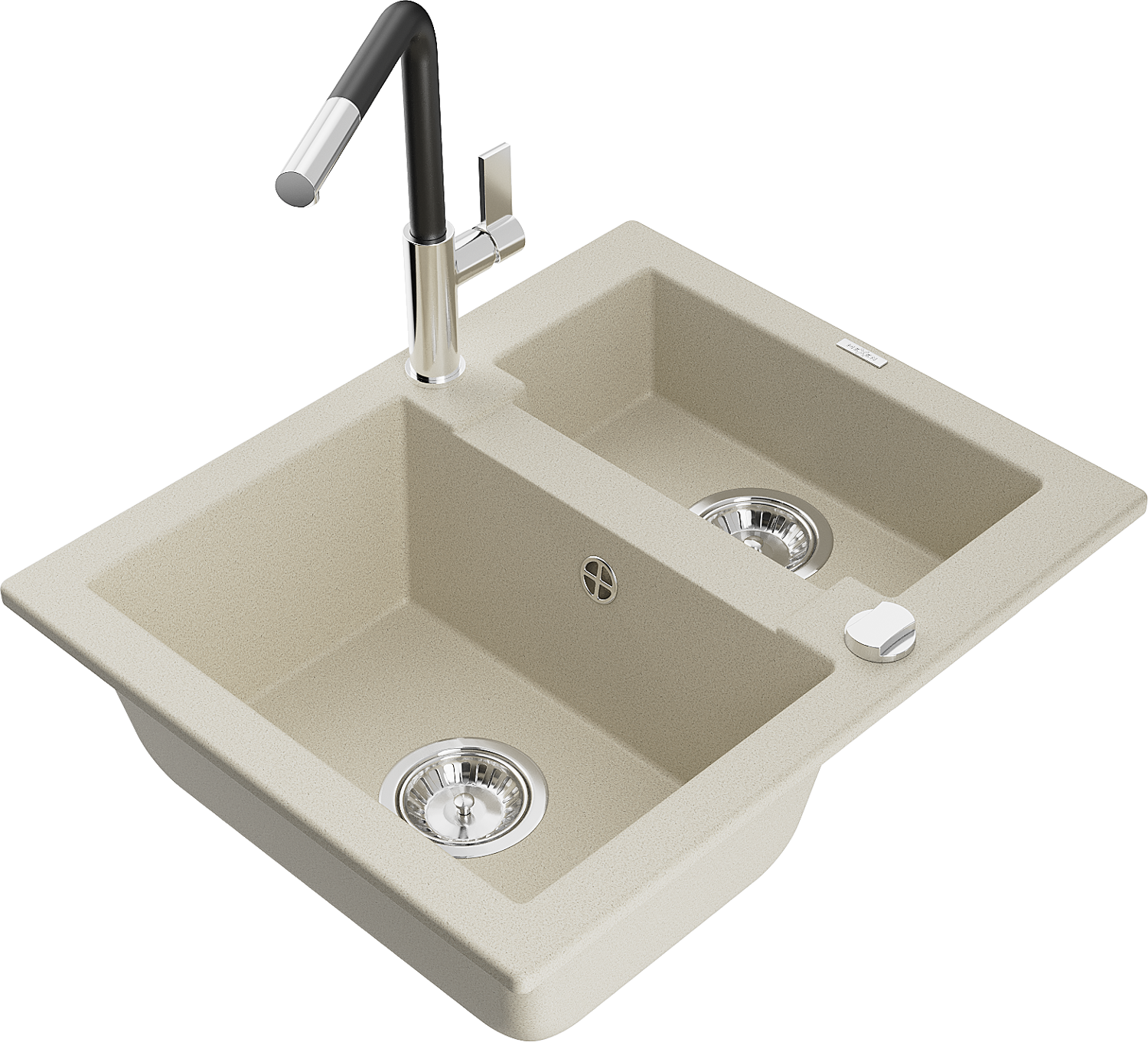 Mexen Carlos granitinis virtuvės kriauklė 1,5 skyrių su maišytuvu Flora, smėlio spalvos - 6518-69-670401-07