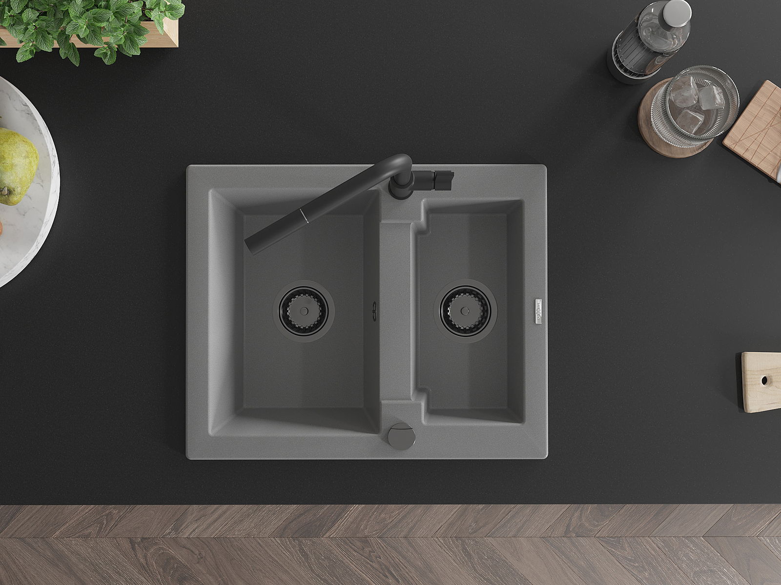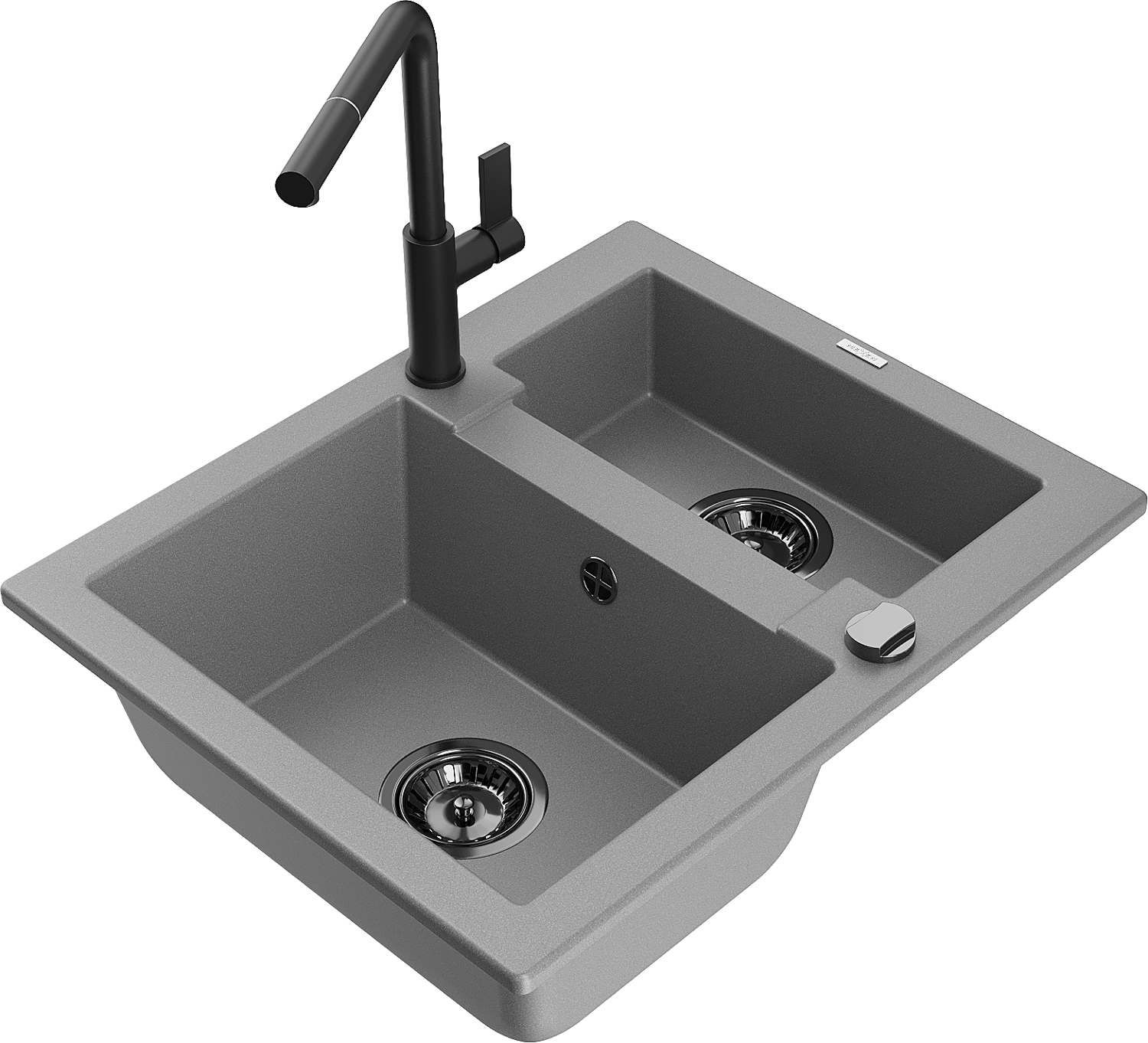 Mexen Carlos granito plautuvė su 1,5 kamera ir Flora virtuvės maišytuvu, pilka - 6518-71-670401-70-B