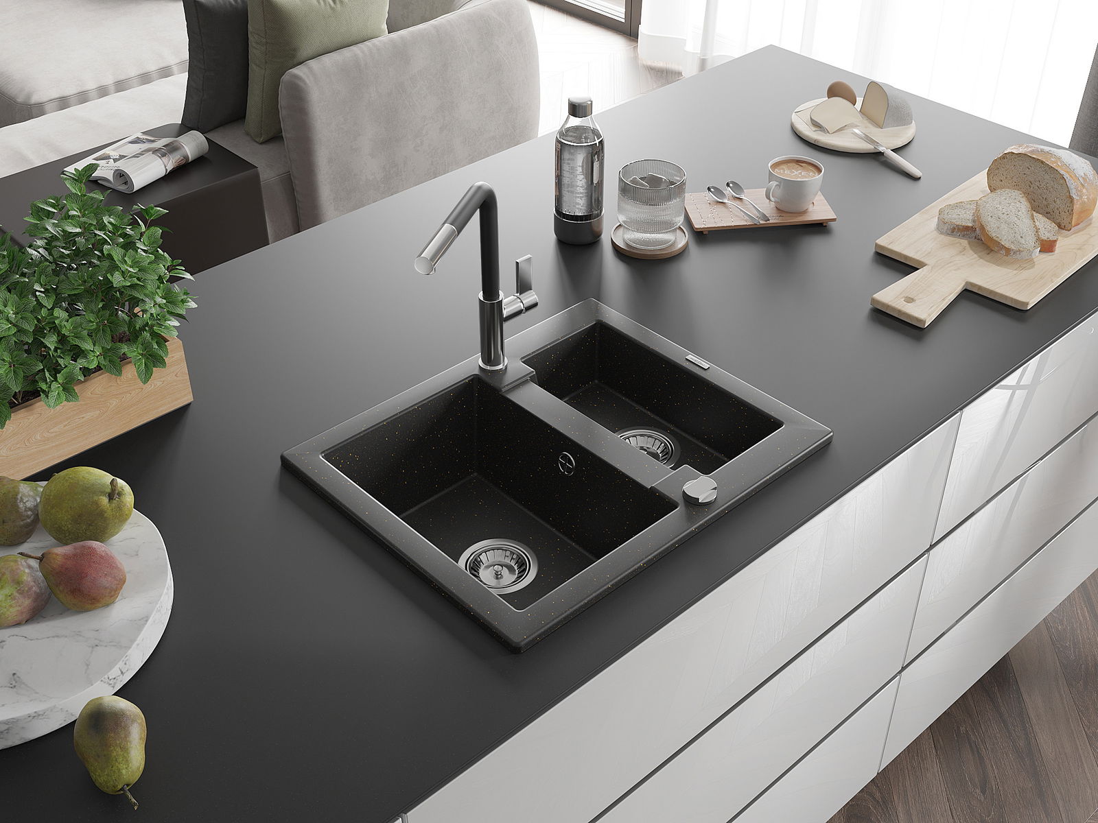 Kriauklės paviršius yra atsparūs dėmėms ir spalvos pasikeitimui, dėl kurio lengva valyti ir ilgą laiką išlaikyti savo spalvą. Estetinis ir praktiškai papildantis kiekvieną virtuvę.