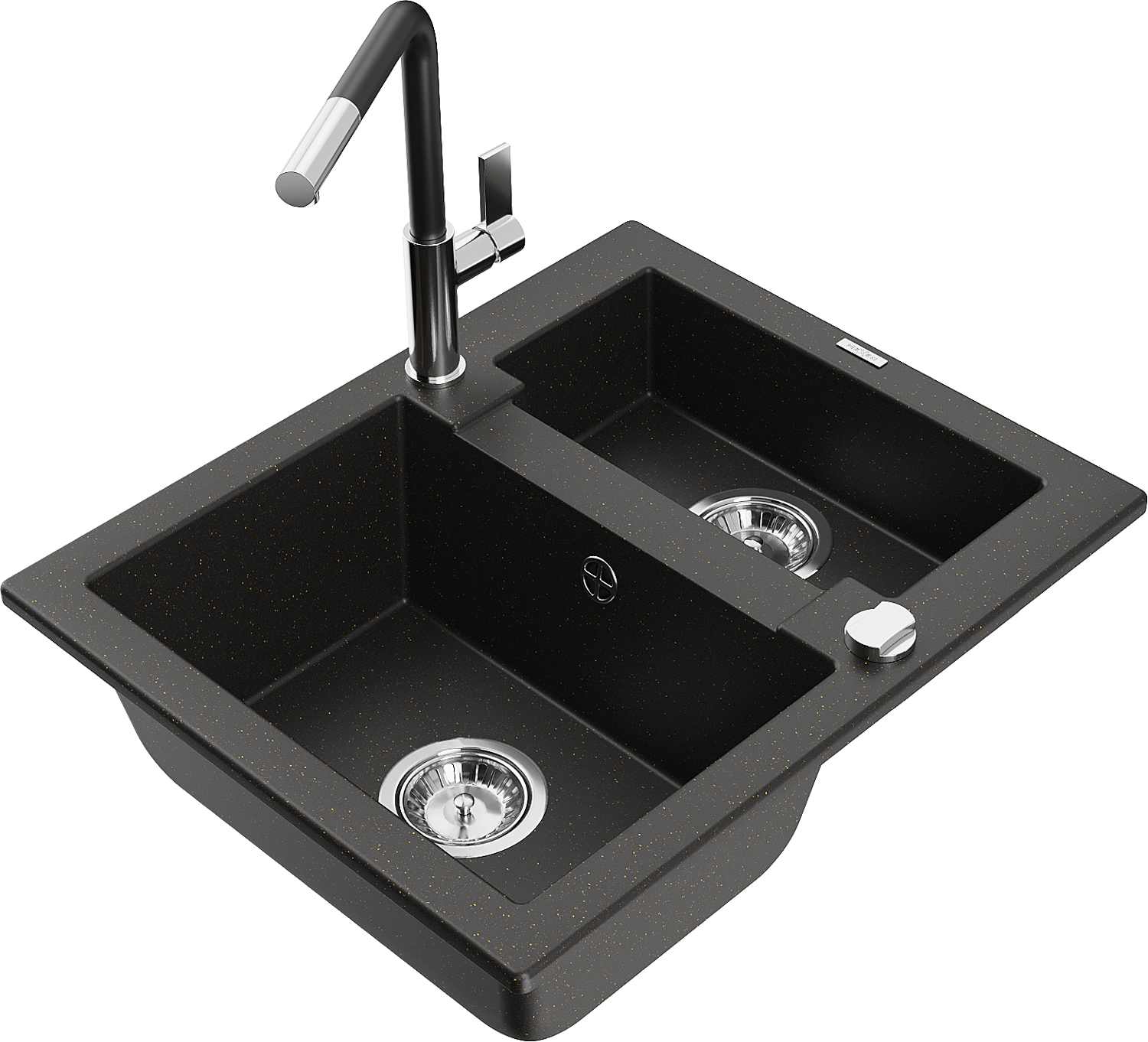 Mexen Carlos granitinė kriauklė 1,5 kamerų su virtuvės maišytuvu Flora, juoda/auksinis metalikas - 6518-75-670401-07
