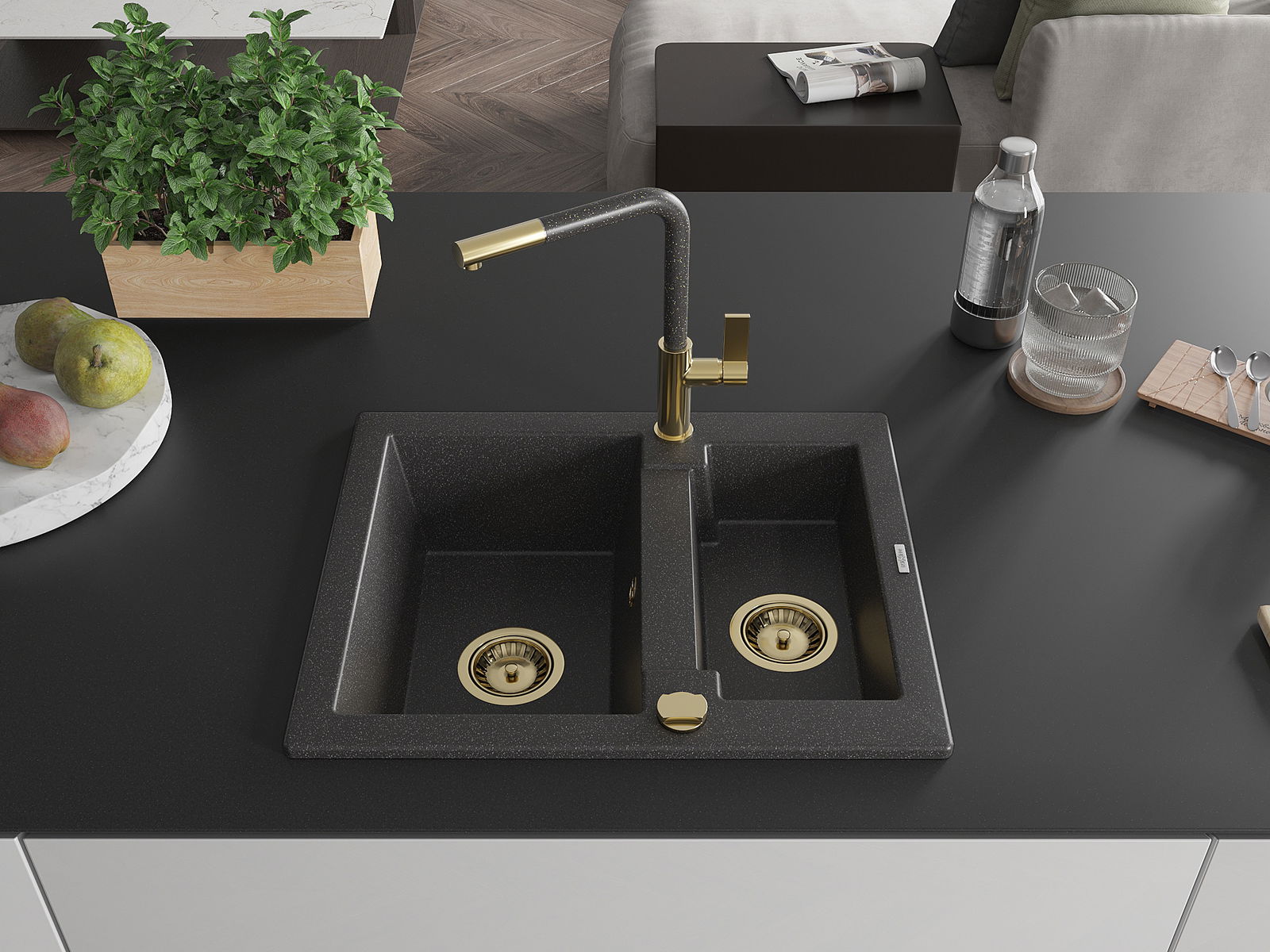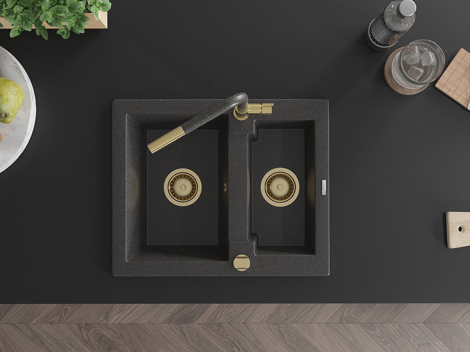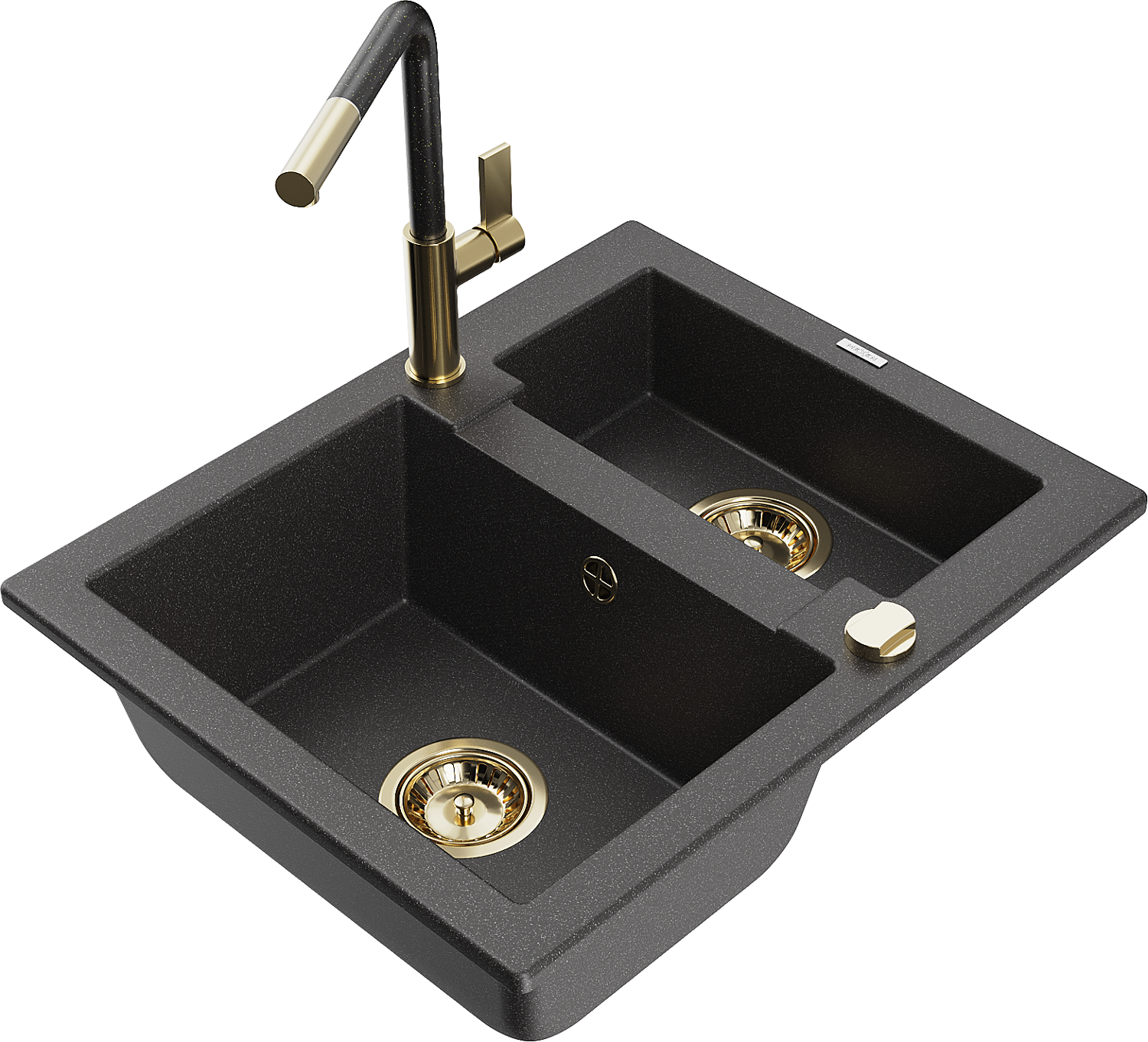 Mexen Carlos granito kriauklė 1,5 skyrių su Flora virtuviniu maišytuvu, juodas taškeliais - 6518-76-670401-75-G