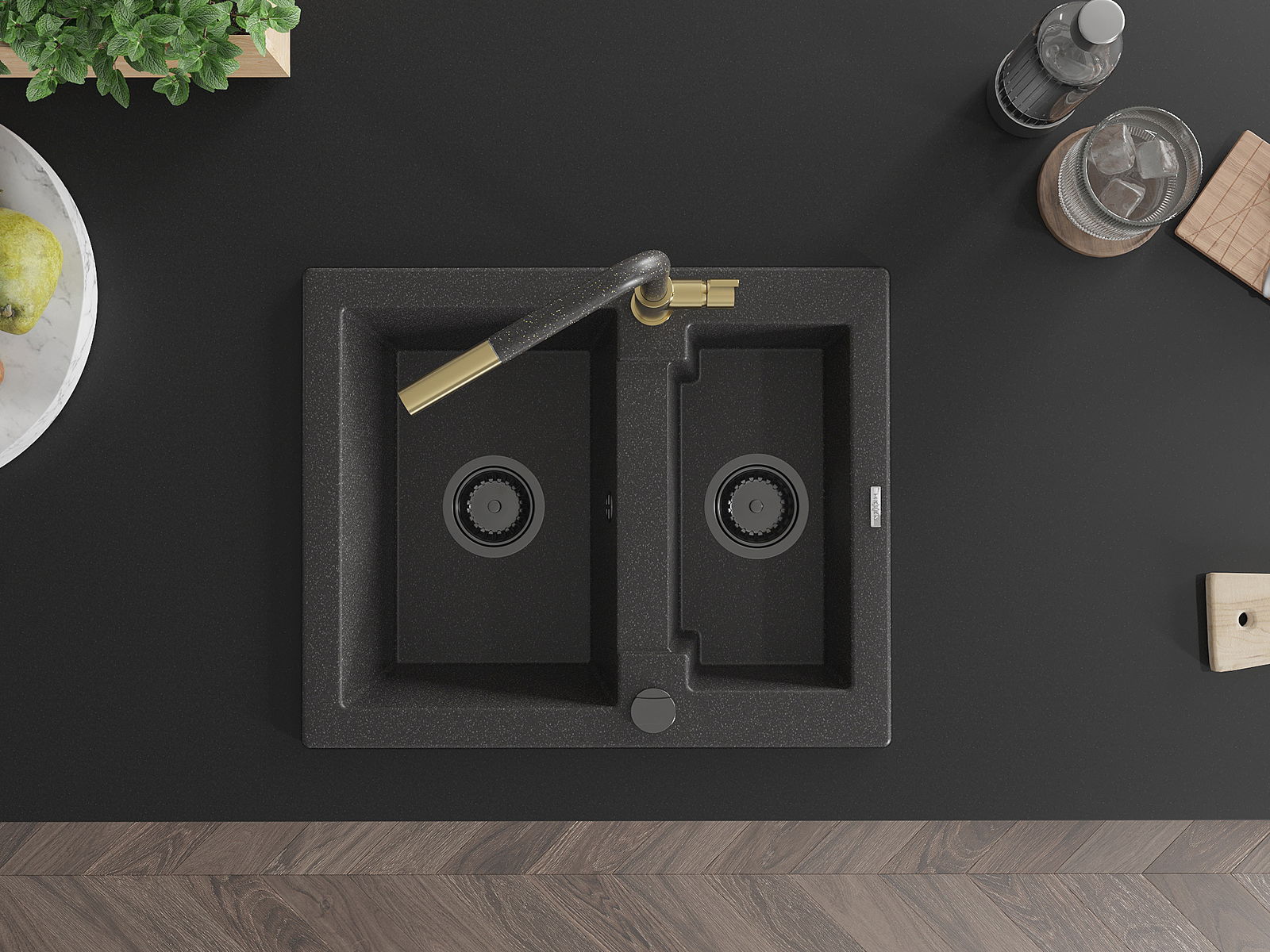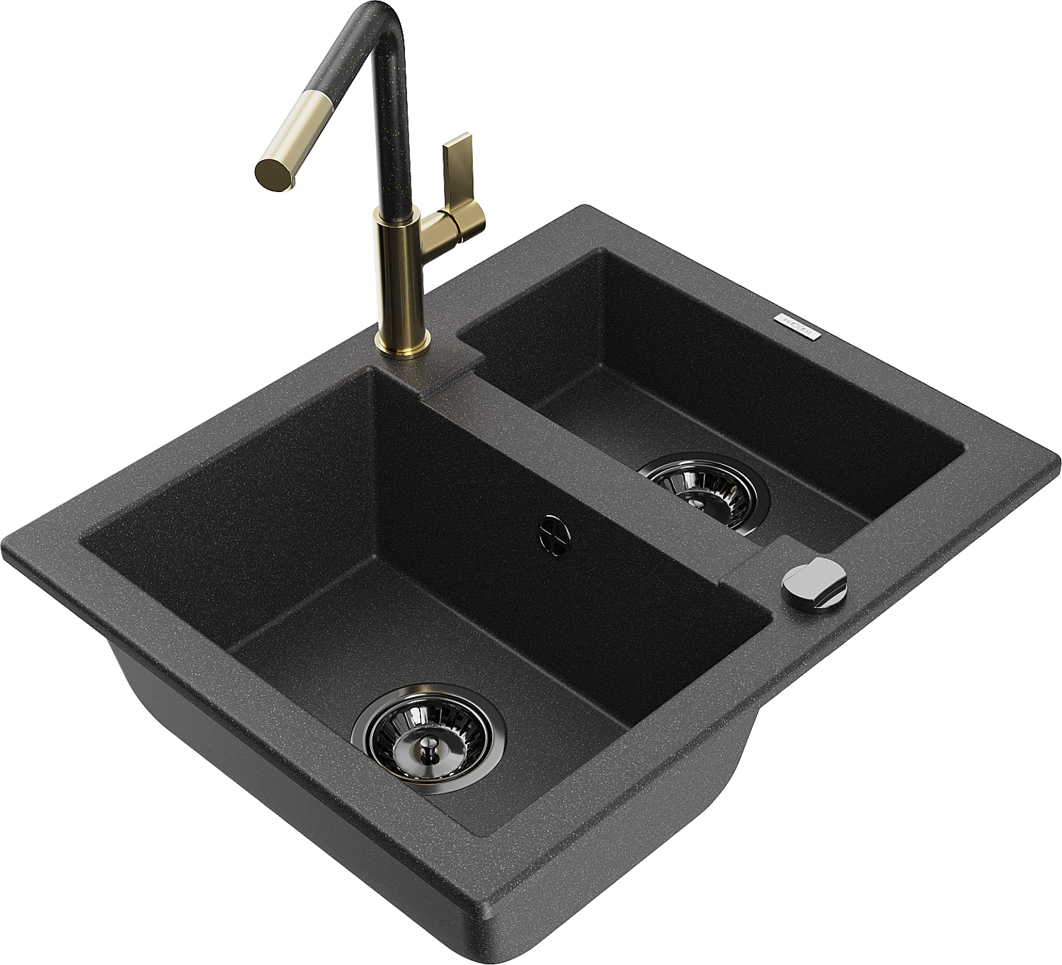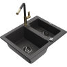 Mexen Carlos granitinė 1,5-jungtės kriauklė su Flora virtuvės maišytuvu, juoda dygliuota - 6518-76-670401-75-B