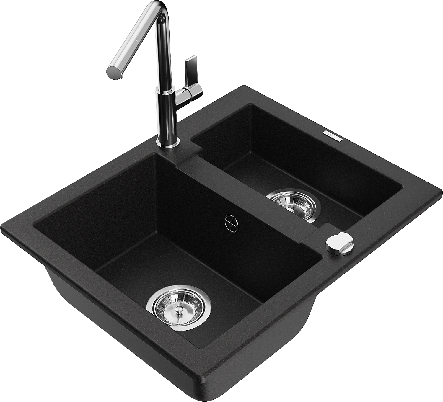 Mexen Carlos granito plautuvė 1,5 skyrių su virtuviniu maišytuvu Flora, juodas - 6518-77-670401-00