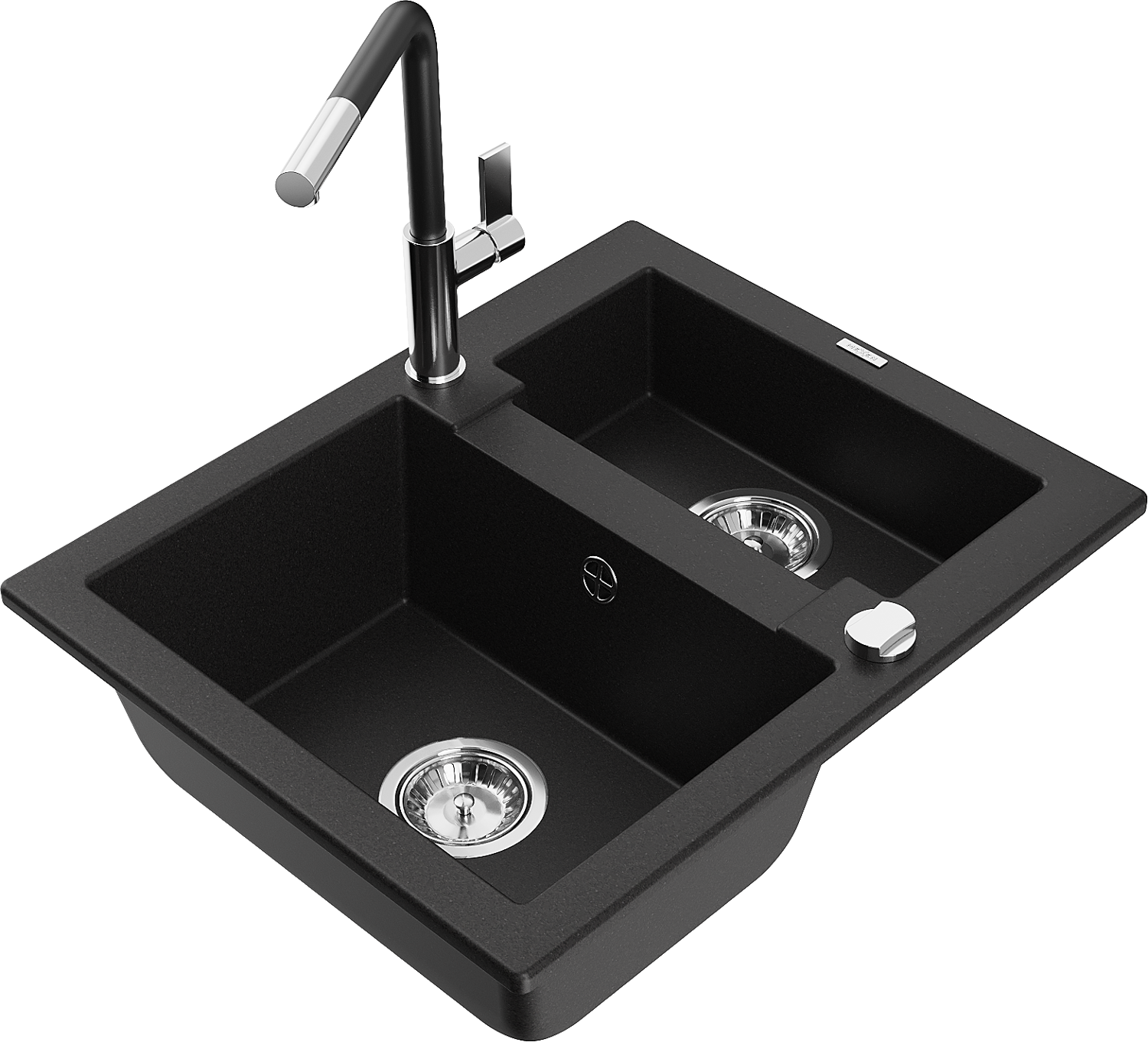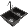 Mexen Carlos granitinė 1,5 skylių plautuvė su Flora virtuvės maišytuvu, juoda - 6518-77-670401-07