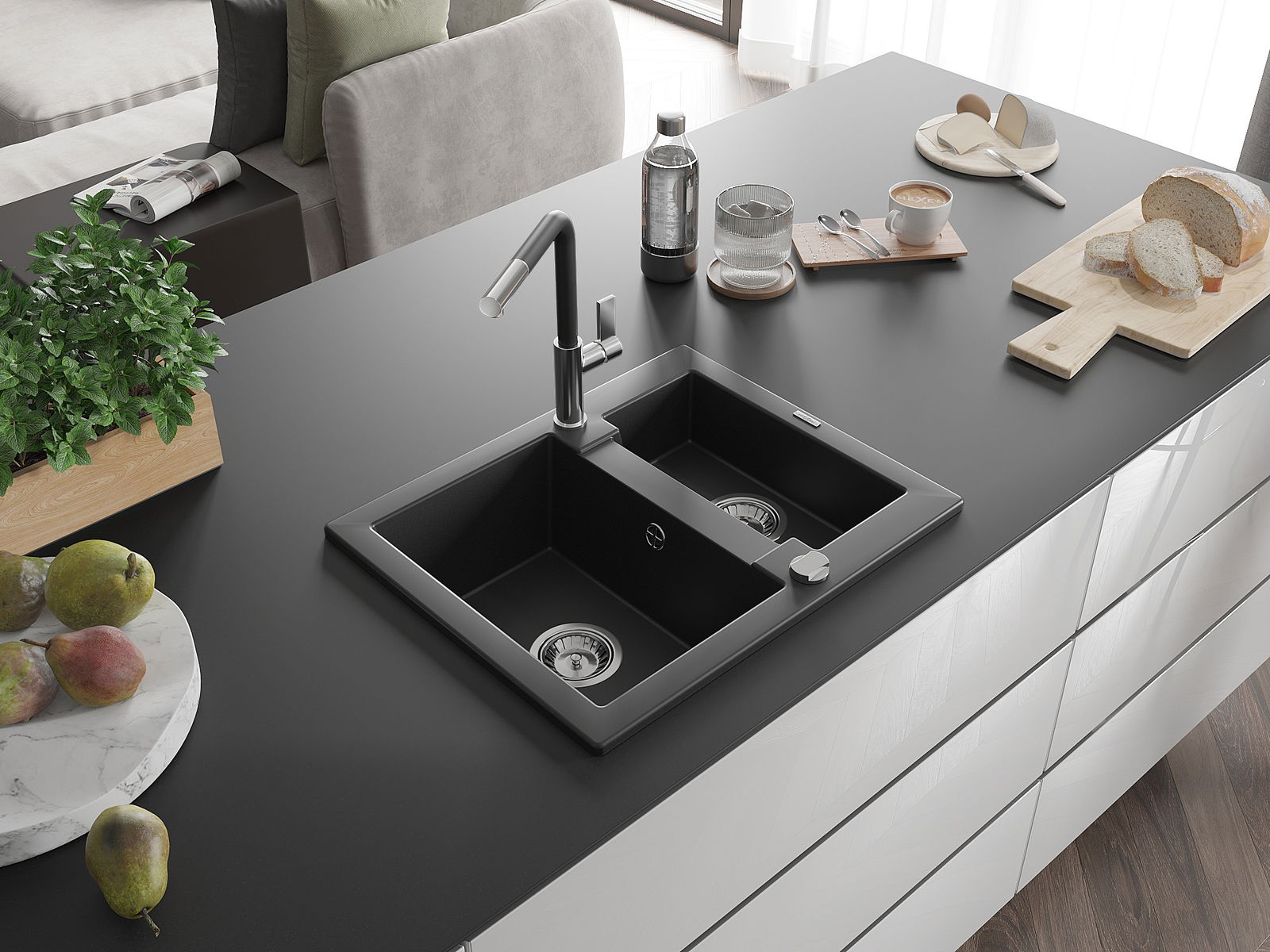 Kriauklės paviršius yra atsparus dėmėms ir spalvos pokyčiams, todėl jį lengva prižiūrėti ir jis išlaiko savo spalvą ilgą laiką. Estetiškai ir praktiškai papildo kiekvieną virtuvę.