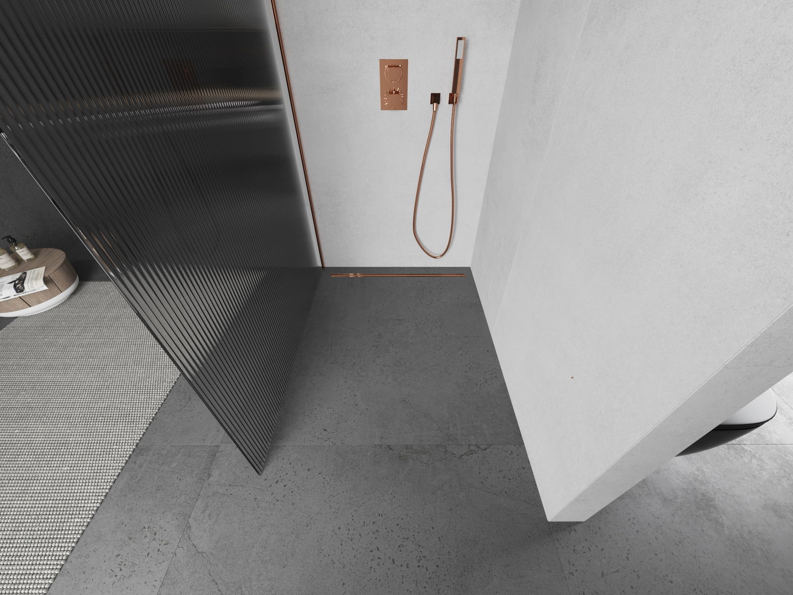 „Mexen Kioto“ dušo sienelė Walk-in 90 x 200 cm, dryžiai, 8 mm, rausvas auksas - 800-090-101-60-09