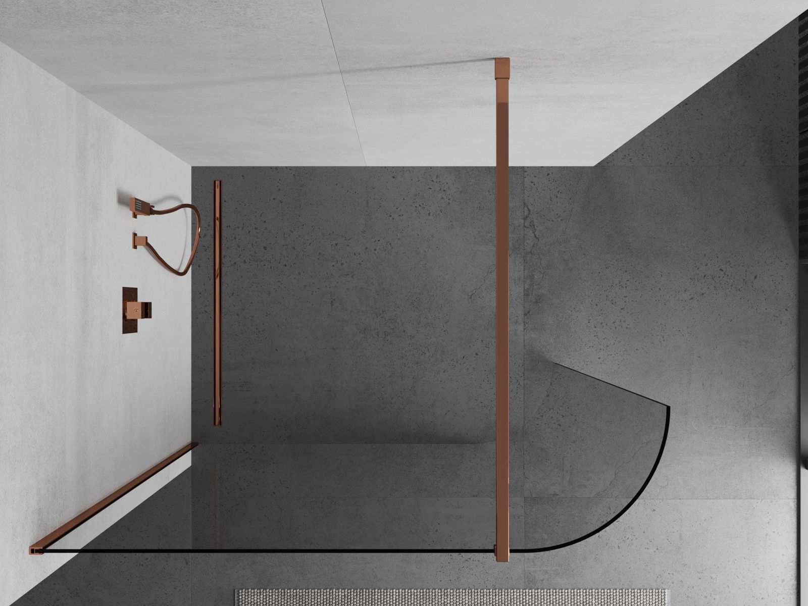 Mexen Kioto-R apvali dušo siena Walk-in 160 x 200 cm, permatoma 8 mm, rožinis auksas - 800-160-101-60-06