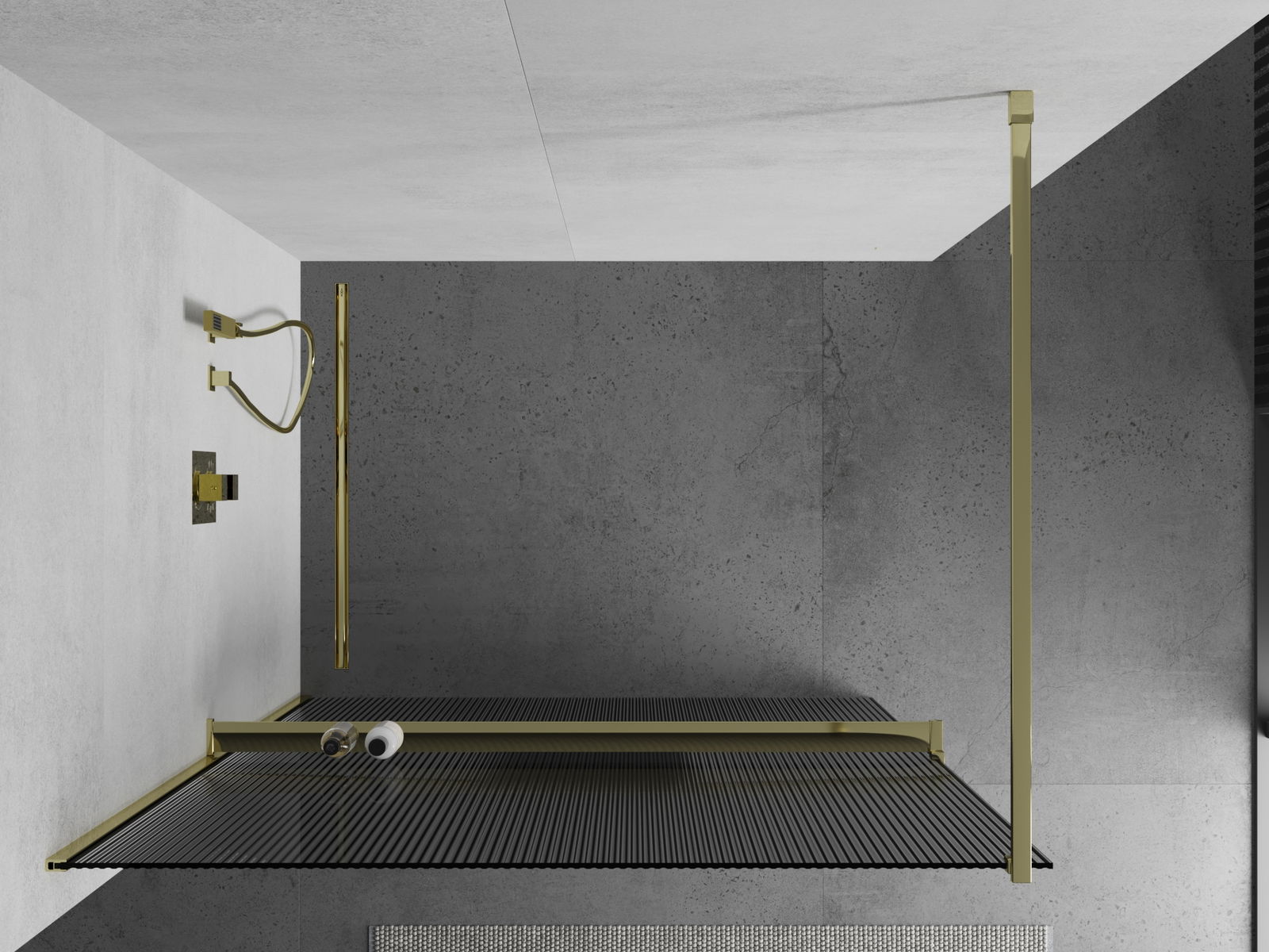 Mexen Kioto+ dušo siena su lentyna Walk-in 80 x 200 cm, brūkšniai, auksinė - 800-080-121-50-09