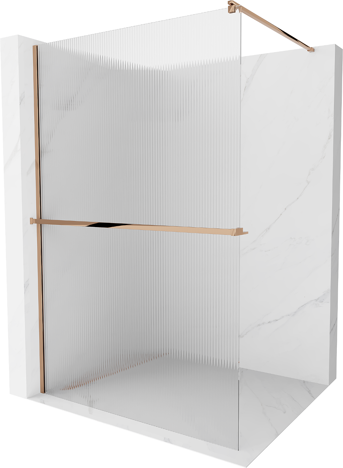 Mexen Kioto+ dušo sienelė su lentyna Walk-in 140 x 200 cm, grioveliai, rožinis auksas - 800-140-121-60-09