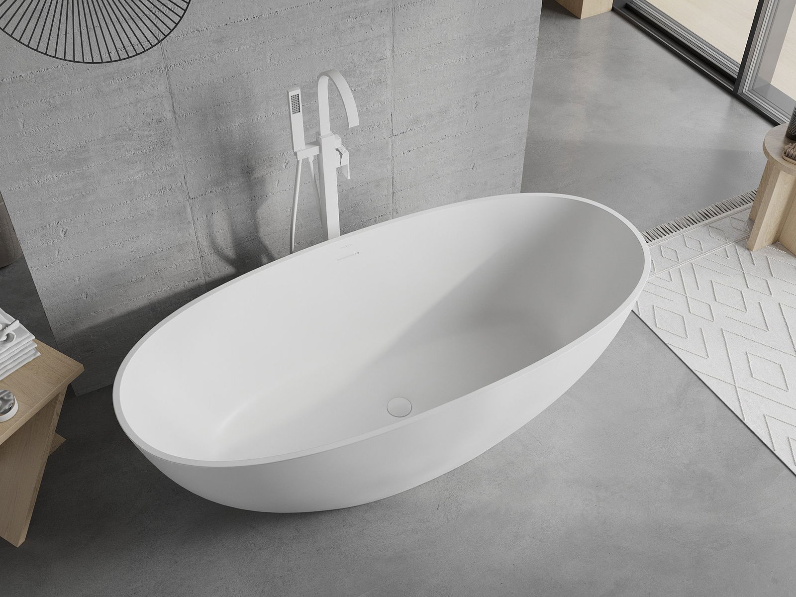 Mexen Bari tai elegantiška laisvai pastatoma vonia, pagaminta iš konglomerato, 165 x 75 cm dydžio. Ji turi modernų, ovalų formos dizainą ir matinę baltos spalvos apdailą, kuri suteikia stilingą išvaizdą. Vonia atspari matinimui ir UV spinduliams, kas užtikrina medžiagos ilgaamžiškumą. Be to, joje yra persipylimo anga ir komplektuojamas sifonas su klik-klak kamščiu. Puikus pasirinkimas žmonėms, ieškantiems funkcionalių ir estetiškų sprendimų savo vonios kambariui.