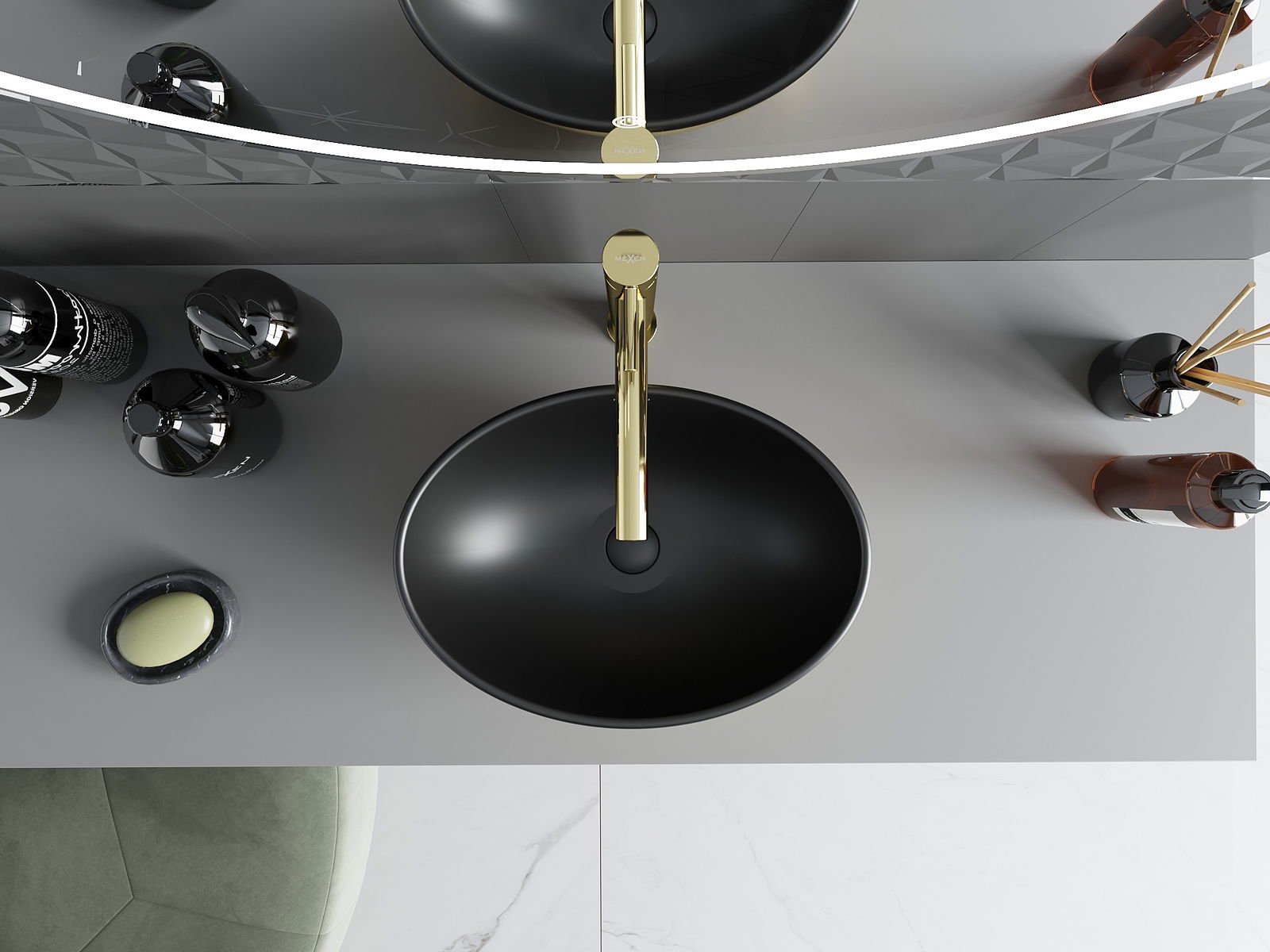 Matte keramikos paviršius puikiai pabrėžia produkto spalvos pobūdį, suteikdamas jai unikalų ir išraiškingą apdailą. Subtili matinės keramikos struktūra pristato eleganciją vonios kambaryje, sukurdama estetinę erdvę.