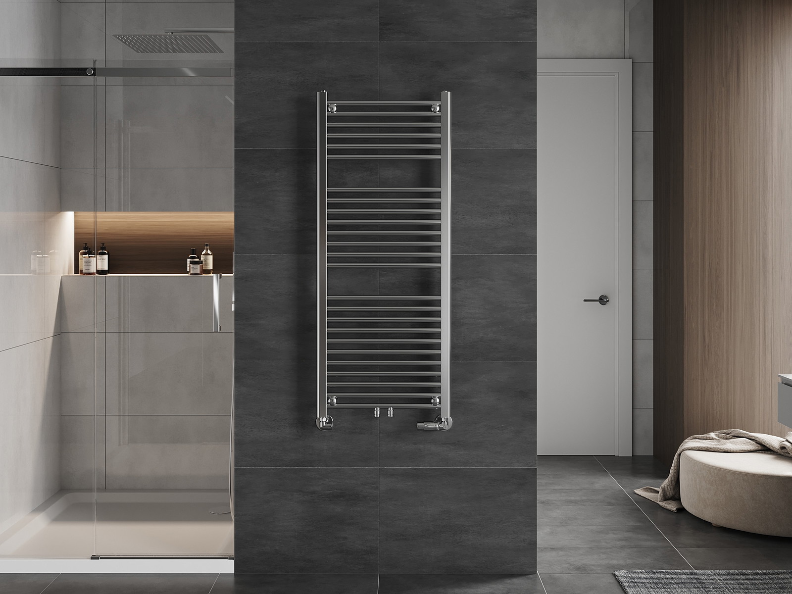 Mexen Mars vonios radiatorius yra puikus sprendimas bet kokiam interjere. Dėl 1200 x 500 mm matmenų puikiai tinka vonios patalpoms. Jis turi aukštą 417 W šildymo galią esant 75/65/20 °C temperatūrai, kas užtikrina efektyvų šildymą. Pagamintas iš tvirto plieno ir užbaigtas elegantišku chromu, garantuoja ilgaamžiškumą ir atsparumą korozijai. Galimybė prisijungti iš apačios arba iš vidurio yra papildomas privalumas, o galimybė montuoti kaitinimo elementą padidina funkcionalumą. Komplekte montavimo priedai.