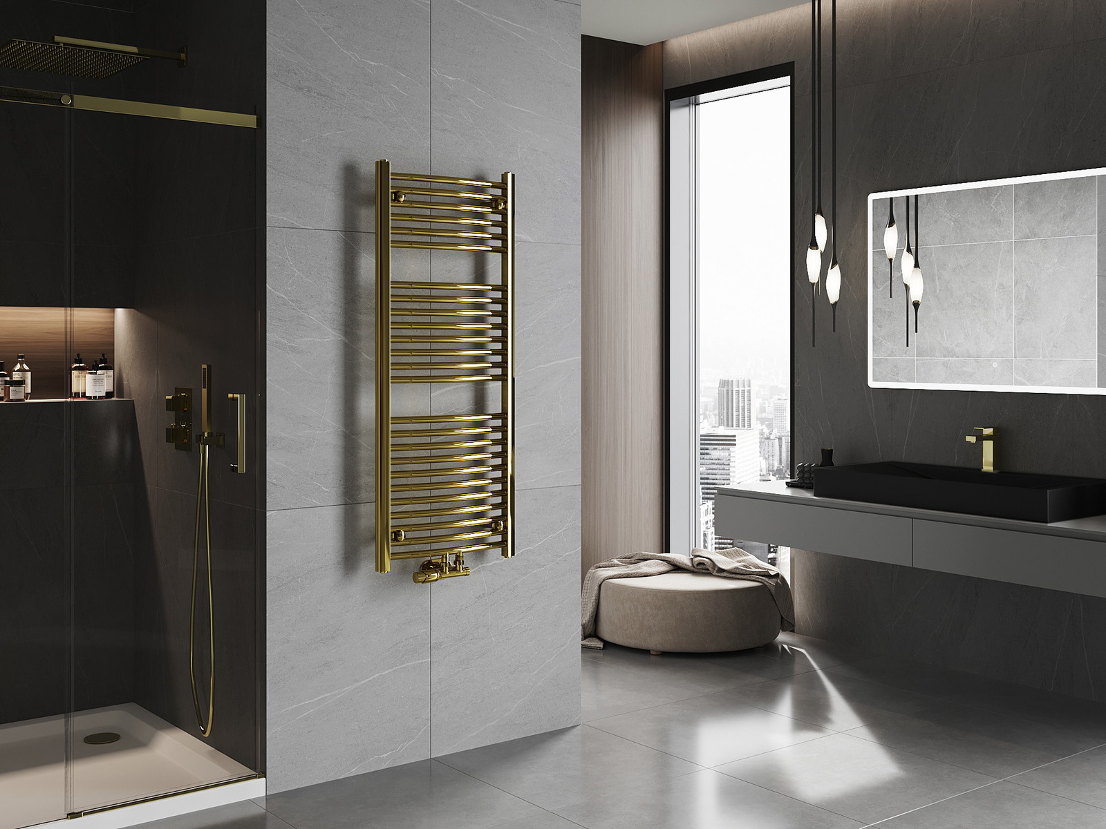 Mexen Ares vonios kambario radiatorius 1200 x 500 mm, 420 W, auksinė spalva - W102-1200-500-00-50