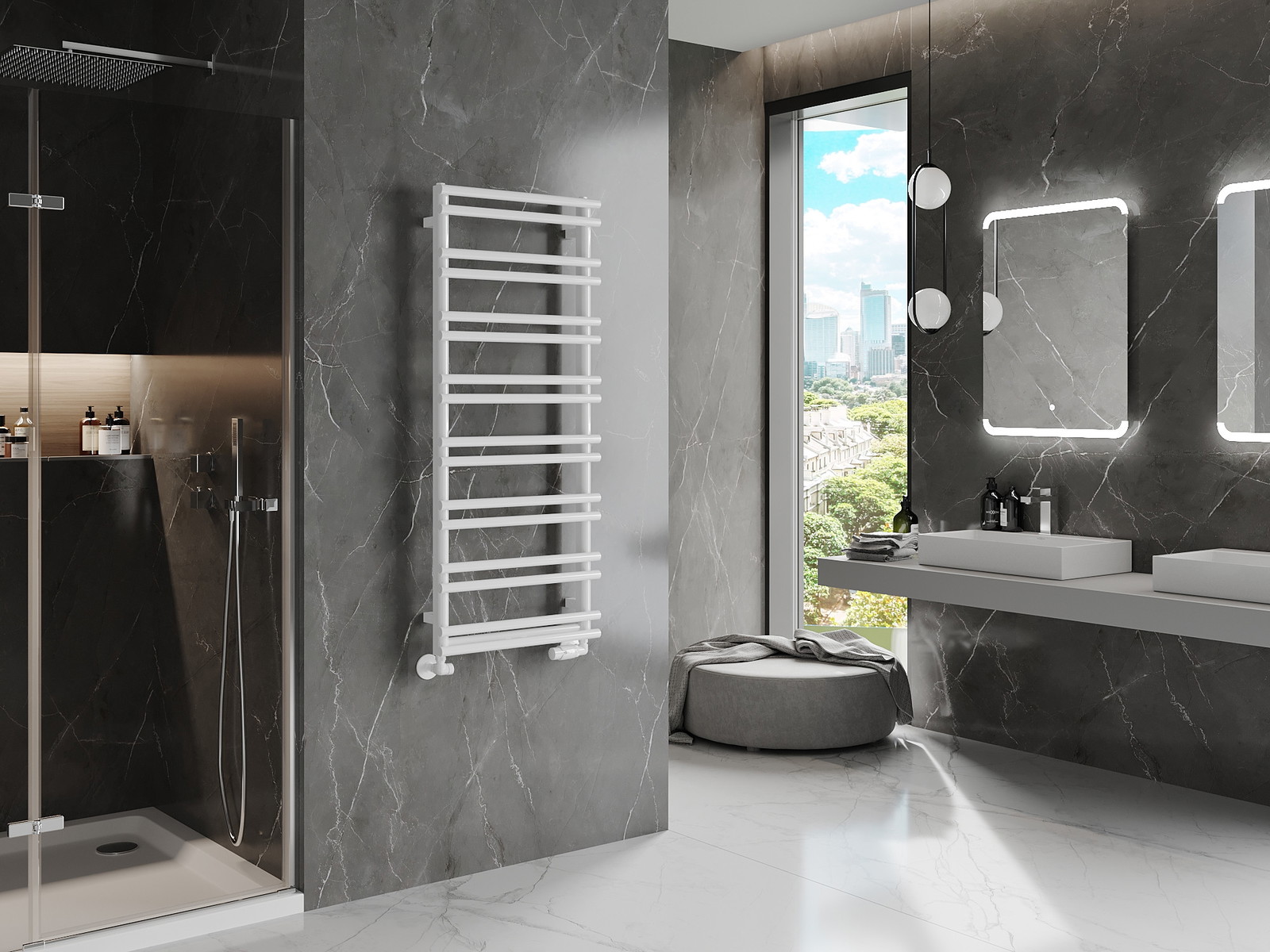 Mexen Saturn yra elegantiškas ir funkcionalus vonios radiatorių, kurio matmenys yra 1200 x 500 mm, puikiai tinkantis bet kuriai voniai. Dėl 409 W šildymo galios jis užtikrina optimalų šildymą, o aukščiausios kokybės plienas ir balta RAL 9016 danga garantuoja ilgaamžiškumą ir atsparumą korozijai. Radiatorius turi galimybę įmontuoti šildytuvą, kas padidina jo funkcionalumą. Kompaktiškas dizainas ir įvairios jungčių galimybės leidžia lengvai ir lankščiai jį įdiegti. Rinkinyje yra visi reikalingi montavimo priedai ir atvėsintuvas.