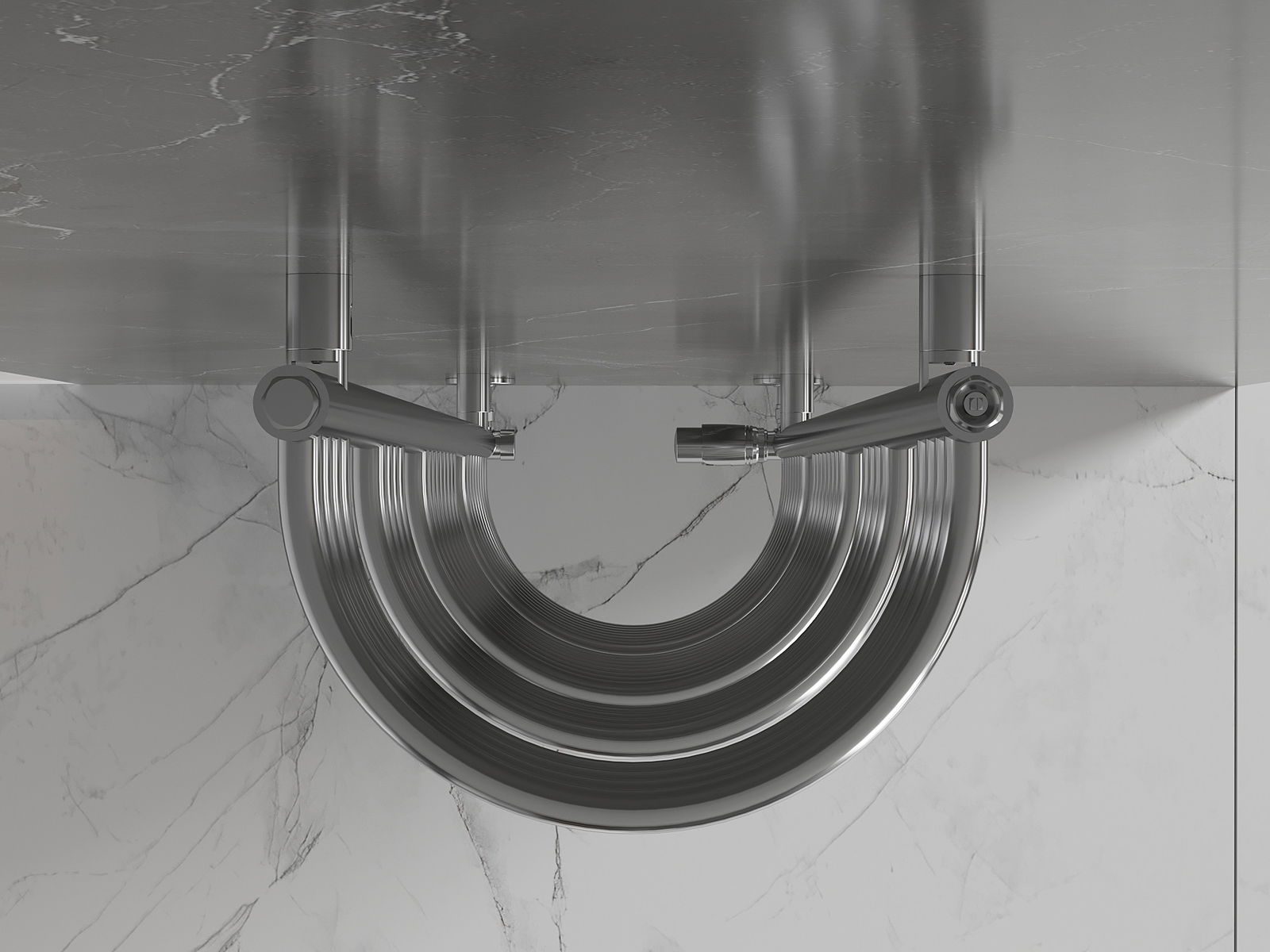 Komplekte: pakabos, montavimo rinkinys, uždengiančios kamščiai ir oras pašalinimo vožtuvas