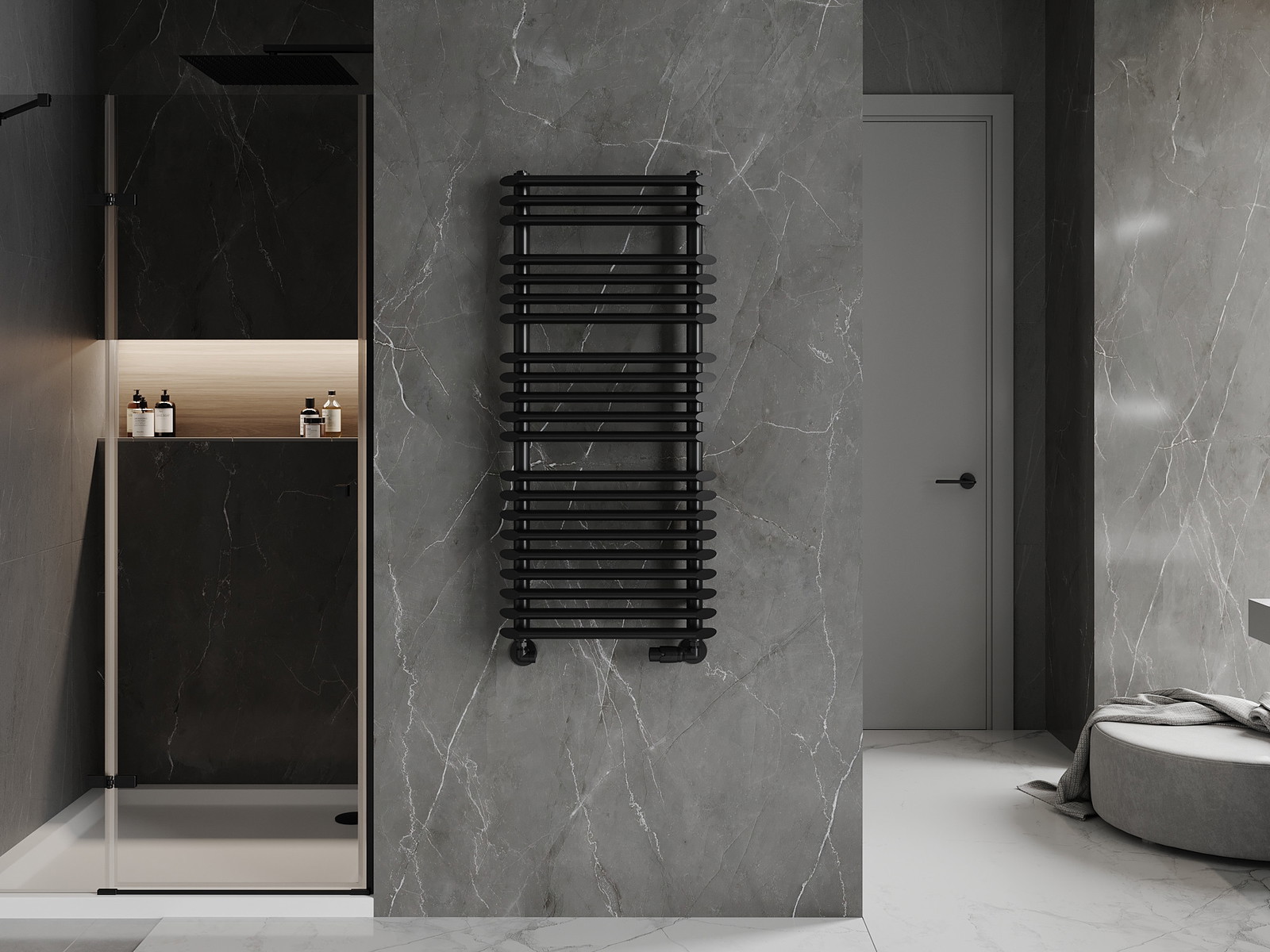 Mexen Akan yra modernus vonios radiatorių su matmenimis 1080 x 500 mm ir šildymo galia 784 W, kuris derina funkcionalumą ir stilių. Pagamintas iš aukštos kokybės plieno, šis radiatorius su elegantiška juoda apdaila (RAL 9005) puikiai tinka bet kurioje vonioje. Dėl reakcijos į ugnį klasės A1 ir galimybės dirbti iki 95°C temperatūroje, užtikrina saugumą ir patikimumą. Montavimas yra paprastas su pridėtais priedais, o ilgaamžė dažų danga apsaugo nuo korozijos.
