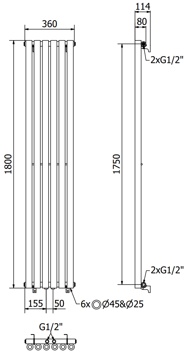 - 4xG ½″ iš viršaus ir apačios dešinėje arba kairėje pusėje