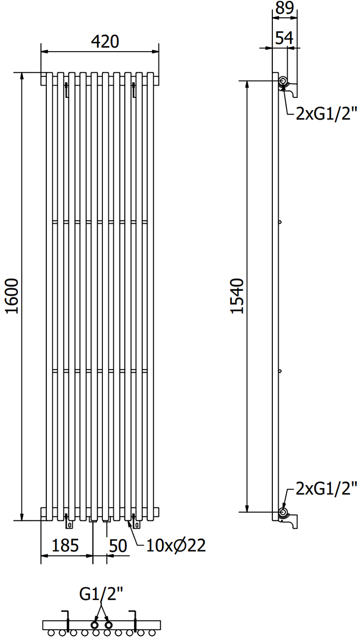 - 4xG ½″ iš viršaus ir apačios dešinėje arba kairėje