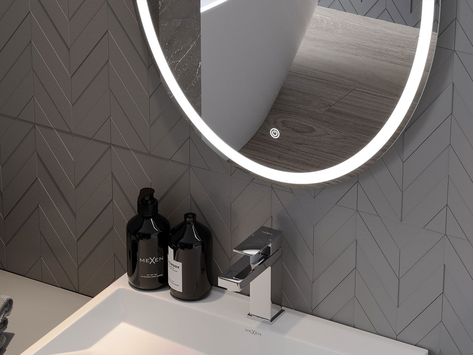 Veidrodinį apšvietimą galima paleisti paprastu ir patogiu būdu, liečiant jungiklį ant veidrodžio paviršiaus. Tai leidžia greitai apšviesti, neprivalant pasiekti tolesnio tradicinio apšvietimo jungiklio.