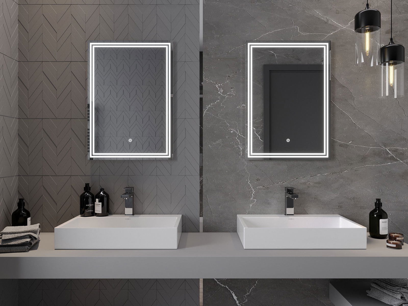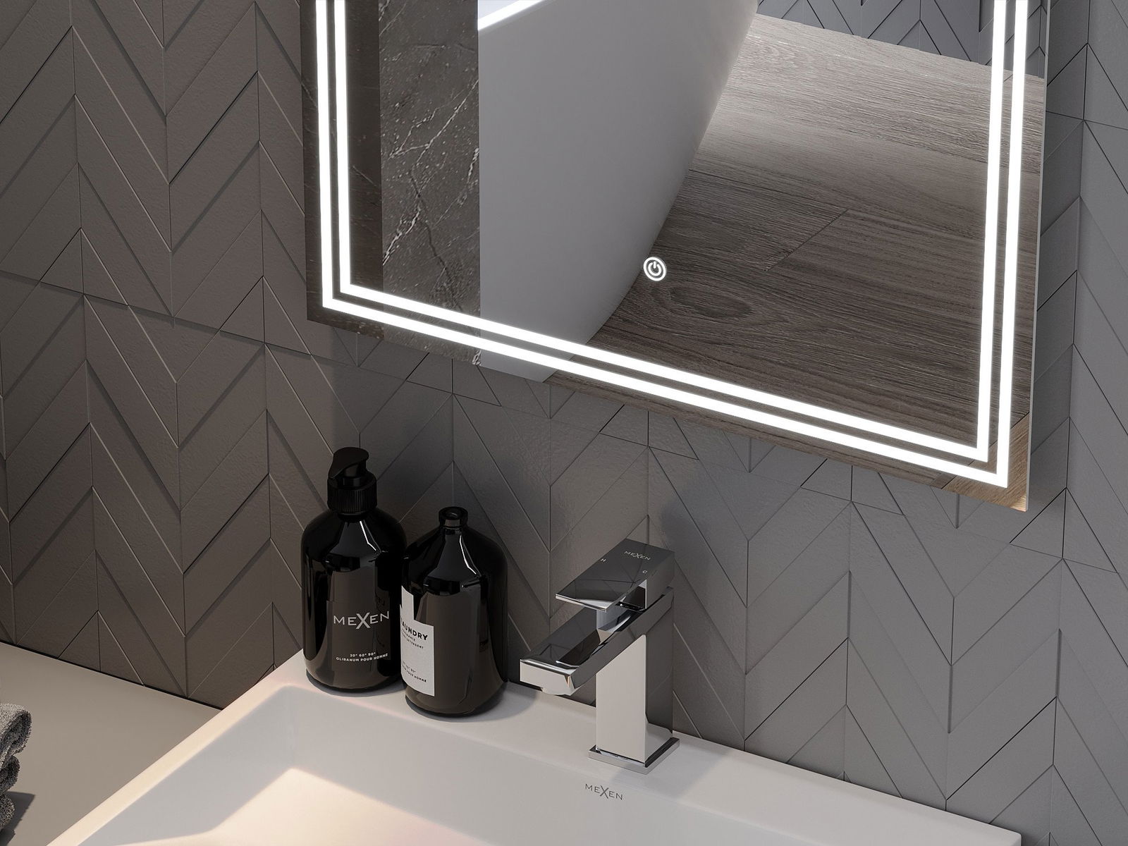 Veidrodinį apšvietimą galima paleisti paprastu ir patogiu būdu, liečiant jungiklį ant veidrodžio paviršiaus. Tai leidžia greitai apšviesti, neprivalant pasiekti tolesnio tradicinio apšvietimo jungiklio.