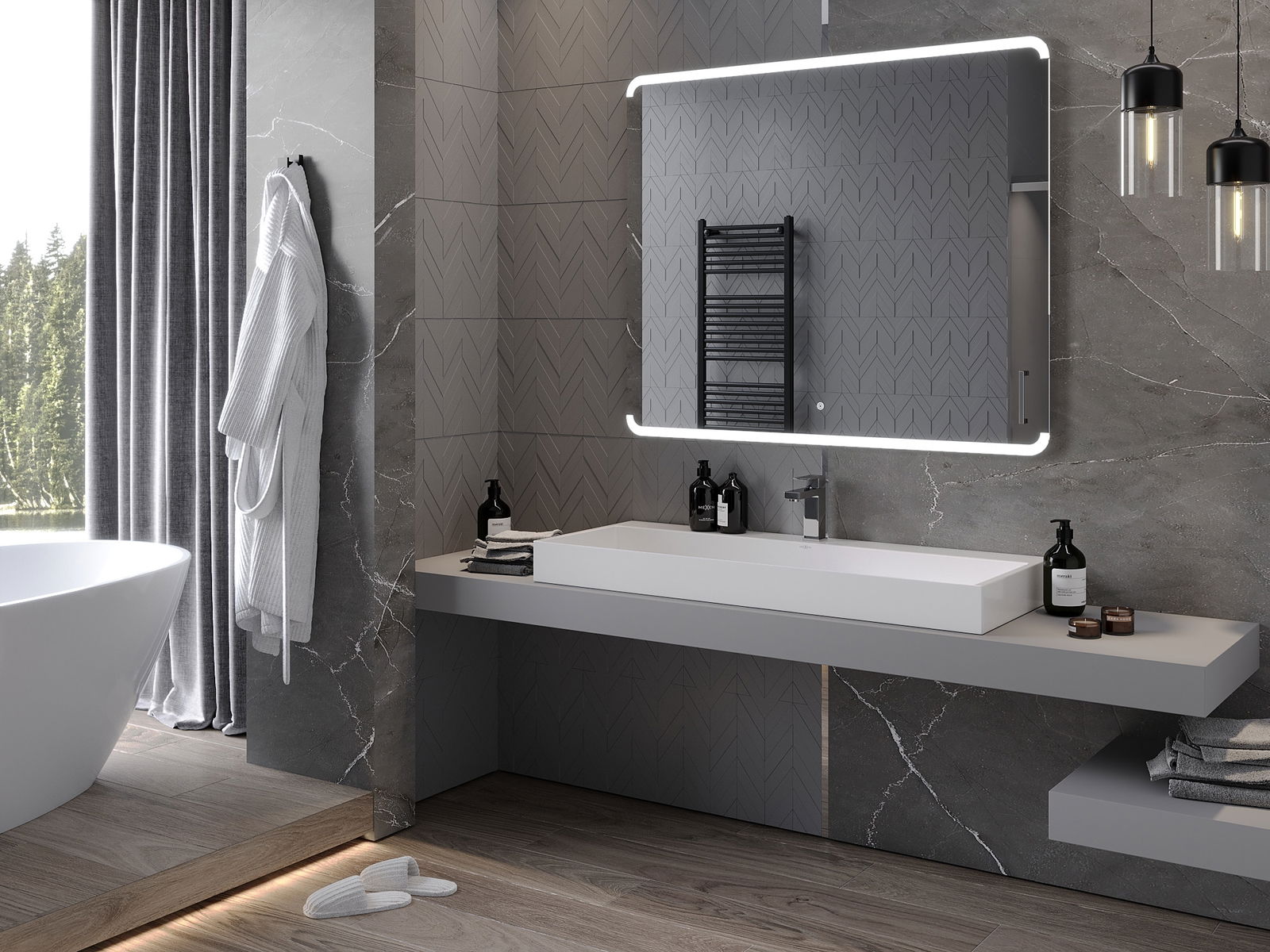 Veidrodžio apšvietimą galima paprastai ir patogiai įjungti palietus jungiklį veidrodžio paviršiuje. Tai leidžia greitai apšviesti, nereikia ieškoti toliau esančio tradicinio apšvietimo jungiklio.