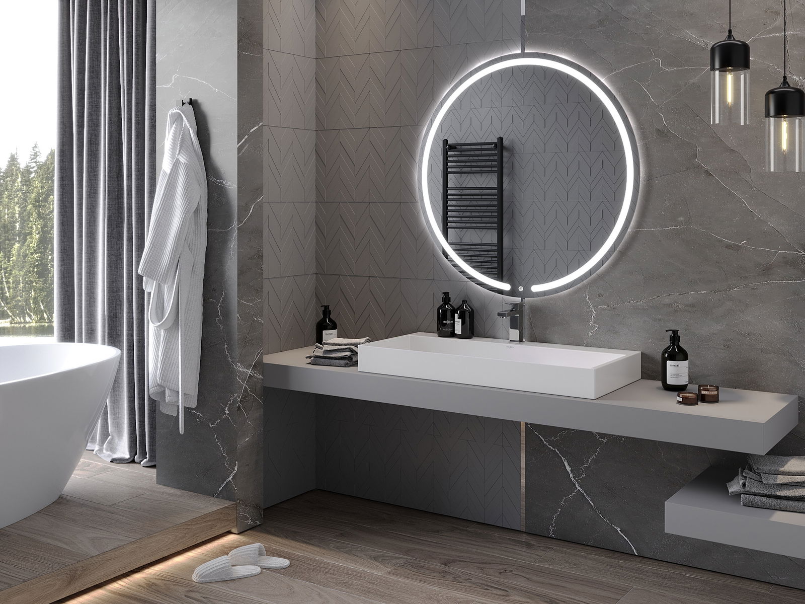 LED foninis apšvietimas prie veidrodžio yra praktinis elementas, palengvinantis kasdienį priežiūrą, dėka idealaus veido apšvietimo galimybės. Foninis apšvietimas suteikia vonios kambariui šiuolaikišką apdailą, pabrėžiant jo elegantišką dekorą.