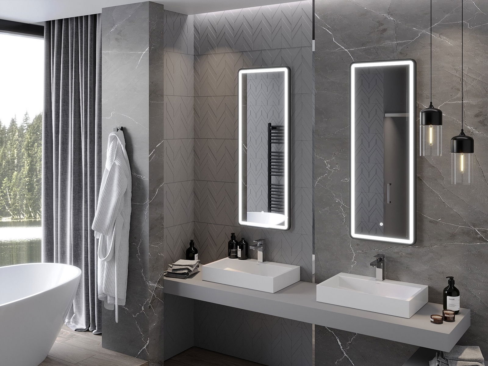Veidrodinį apšvietimą galima paleisti paprastu ir patogiu būdu, liečiant jungiklį ant veidrodžio paviršiaus. Tai leidžia greitai apšviesti, neprivalant pasiekti tolesnio tradicinio apšvietimo jungiklio.