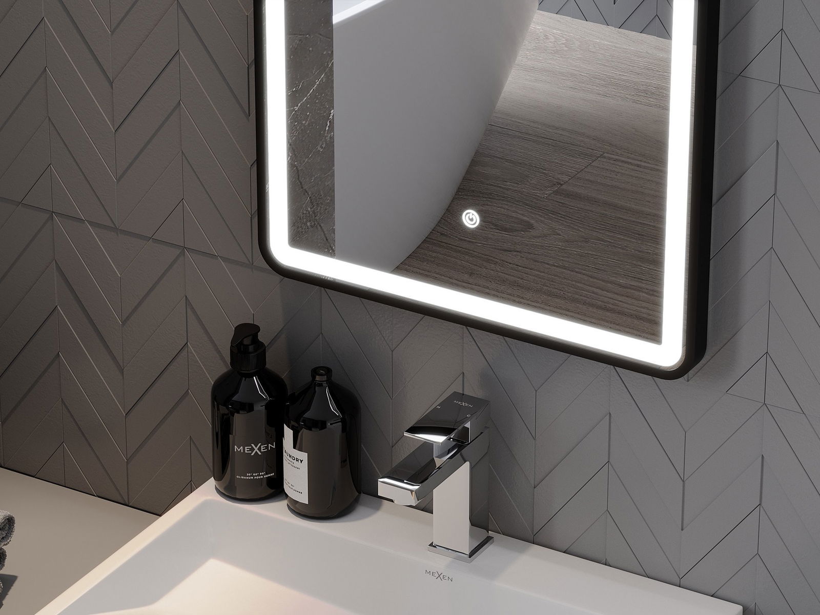 Veidrodinį apšvietimą galima paleisti paprastu ir patogiu būdu, liečiant jungiklį ant veidrodžio paviršiaus. Tai leidžia greitai apšviesti, neprivalant pasiekti tolesnio tradicinio apšvietimo jungiklio.