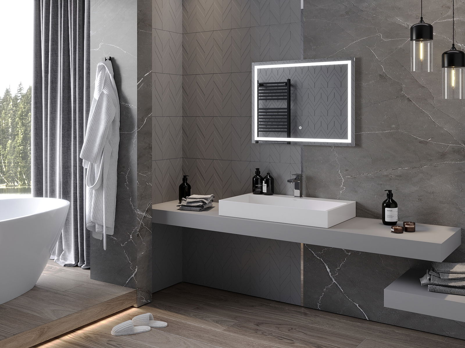Produktas buvo aprūpintas šildymo kilimėliu, dėl kurio veidrodis niekada nėra rūko, net po ilgos ir karštos vonios. Kilimėlis pradeda naudoti apšvietimo jungiklį, užtikrindamas patogumą ir lengvą naudojimą.