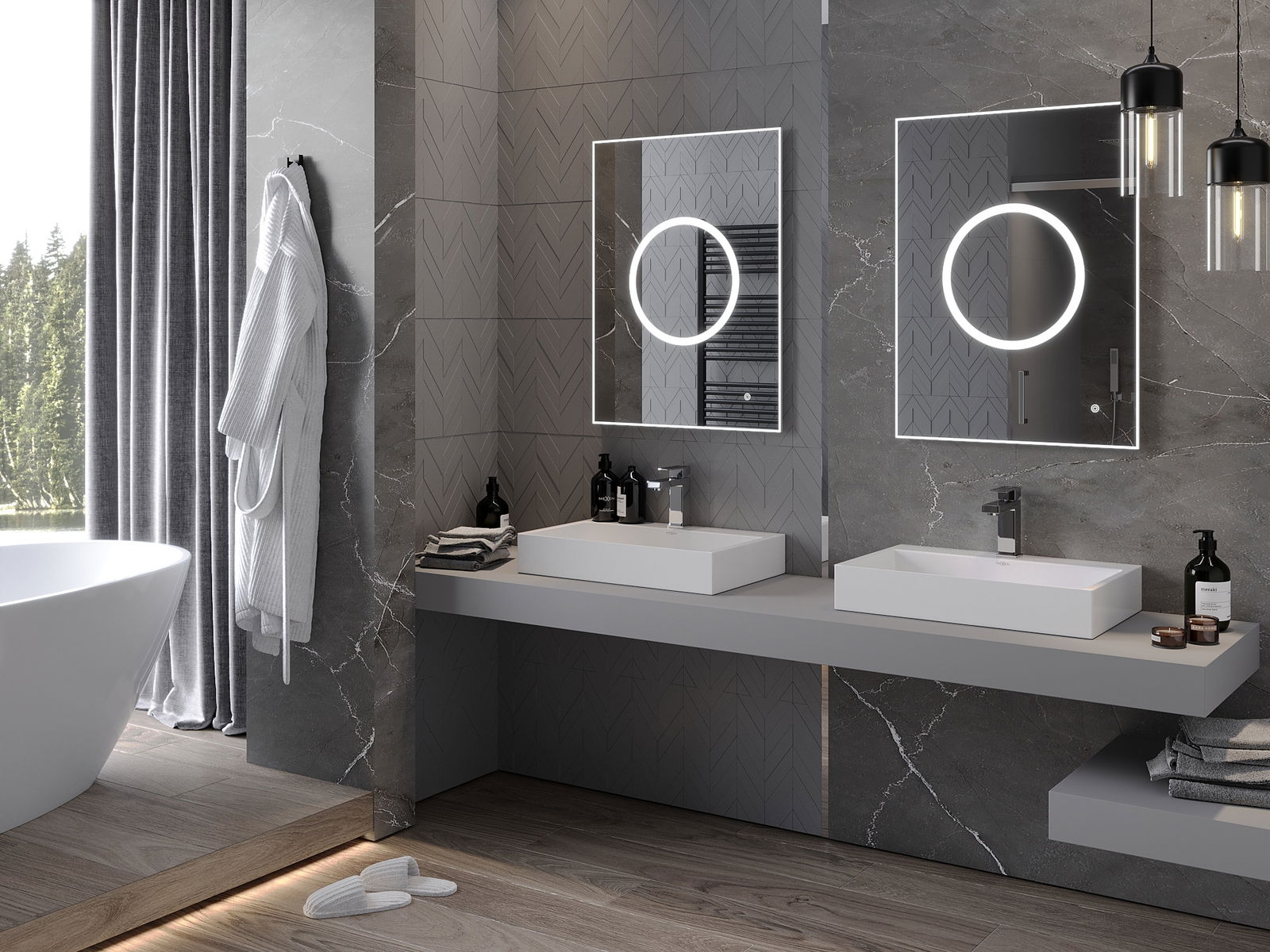 Produktas buvo aprūpintas šildymo kilimėliu, dėl kurio veidrodis niekada nėra rūko, net po ilgos ir karštos vonios. Kilimėlis pradeda naudoti apšvietimo jungiklį, užtikrindamas patogumą ir lengvą naudojimą.
