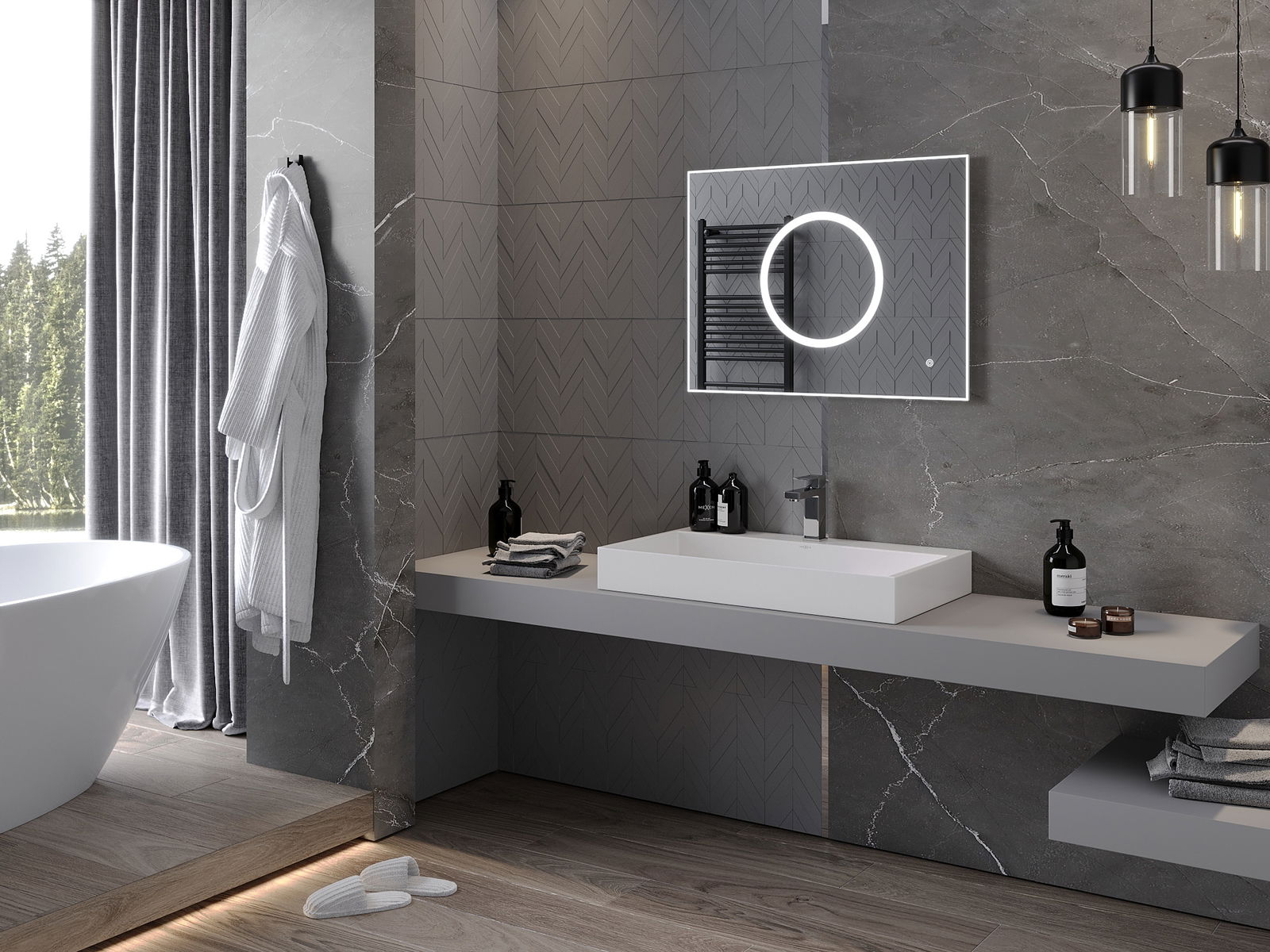 Produktas buvo aprūpintas šildymo kilimėliu, dėl kurio veidrodis niekada nėra rūko, net po ilgos ir karštos vonios. Kilimėlis pradeda naudoti apšvietimo jungiklį, užtikrindamas patogumą ir lengvą naudojimą.