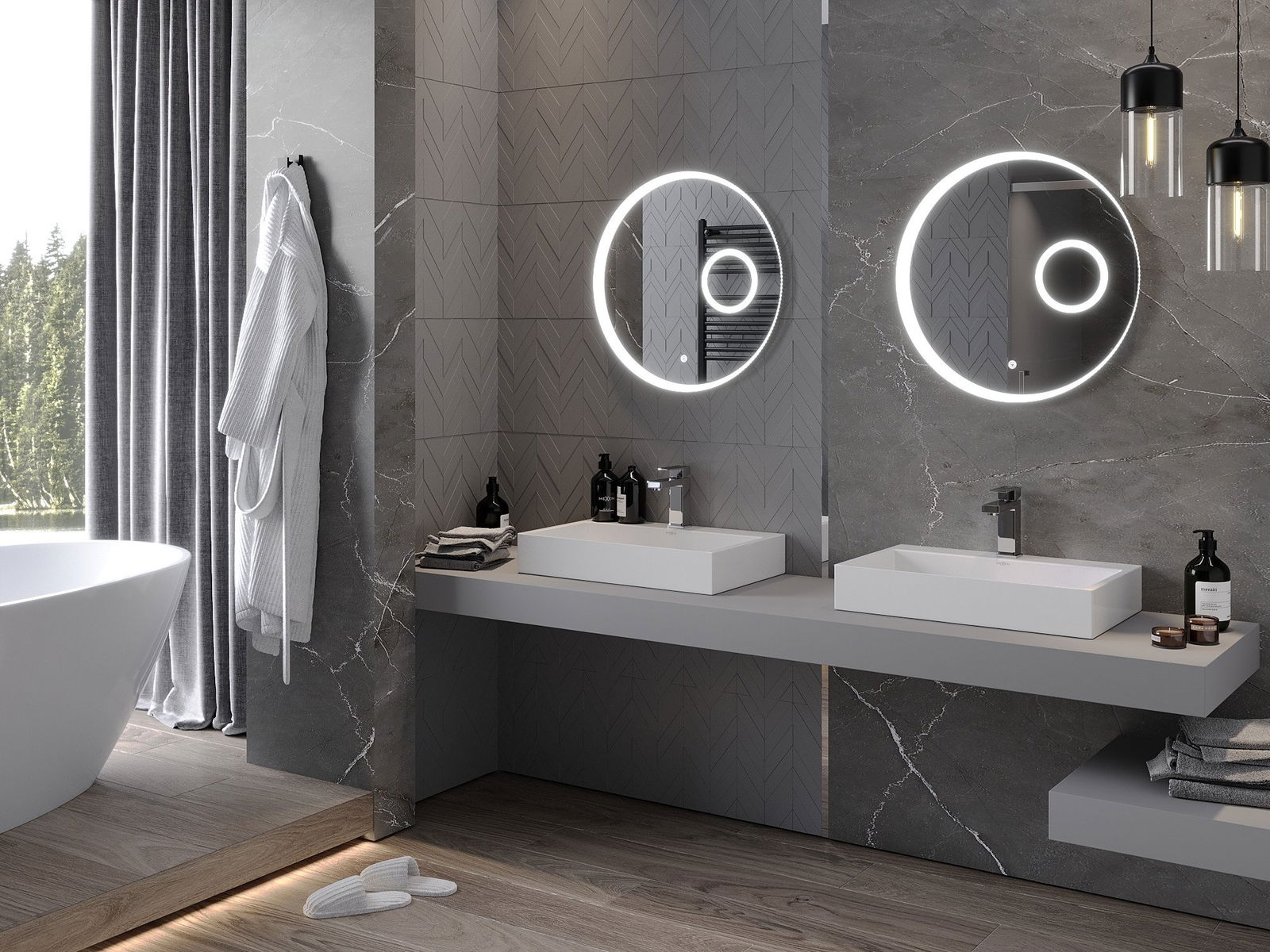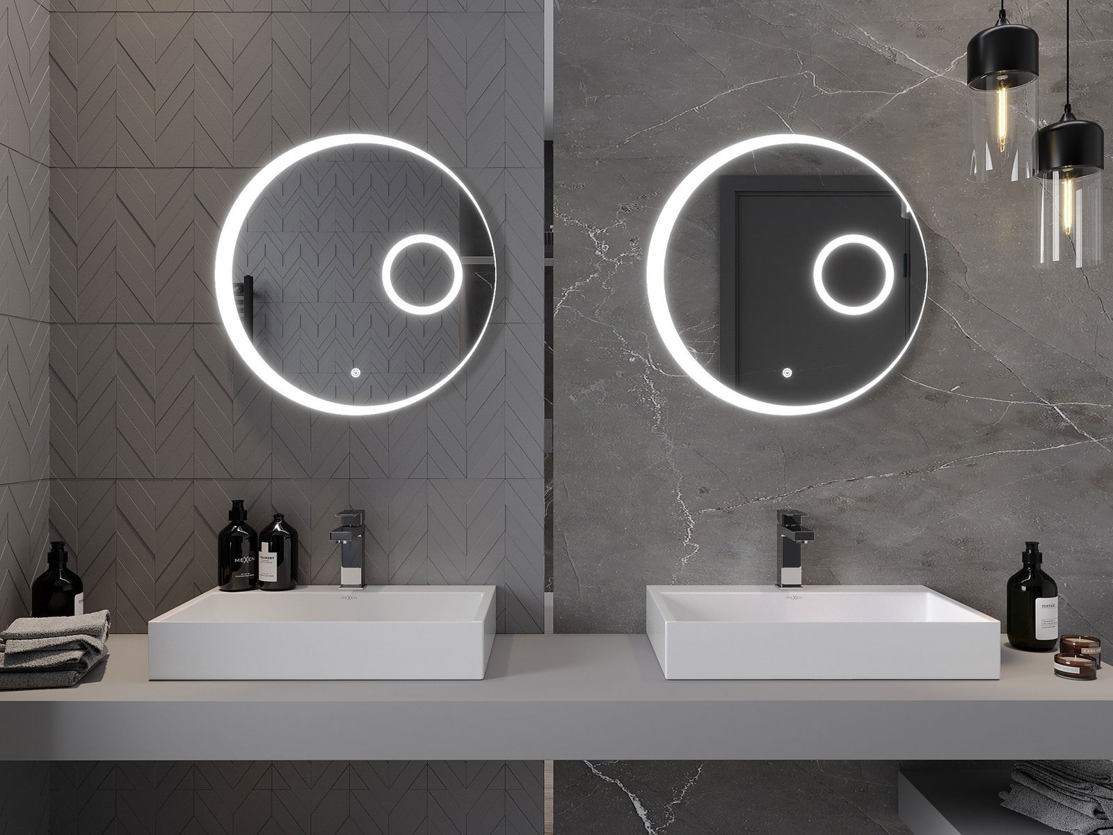 Mexen Ella vonios veidrodis su apšvietimu ir kosmetiniu veidrodžiu, apvalus 60 cm, LED 6000K, nuo rasojimo - 9811-060-060-611-0?