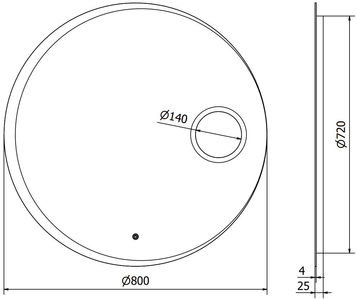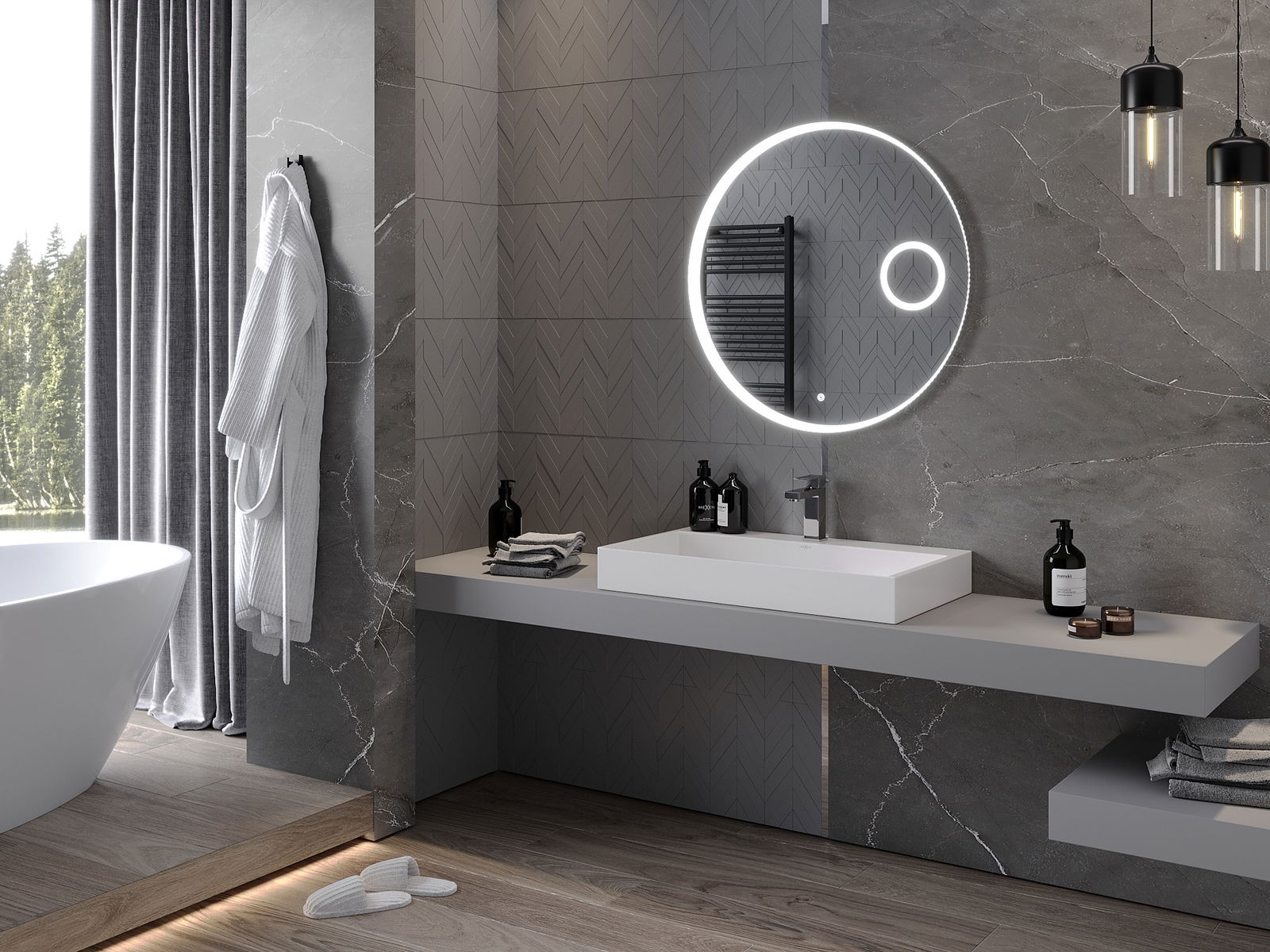 Mexen Ella apvalus vonios veidrodis su apšvietimu ir kosmetiniu veidrodėliu, 80 cm, LED 6000K, antifog - 9811-080-080-611-00