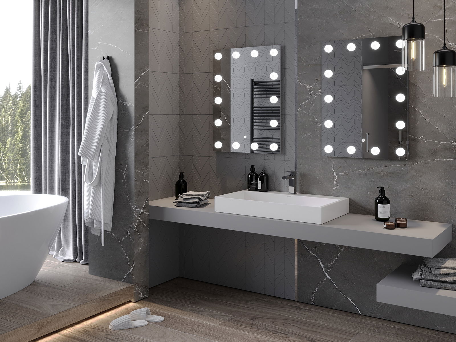Produktas buvo aprūpintas šildymo kilimėliu, dėl kurio veidrodis niekada nėra rūko, net po ilgos ir karštos vonios. Kilimėlis pradeda naudoti apšvietimo jungiklį, užtikrindamas patogumą ir lengvą naudojimą.