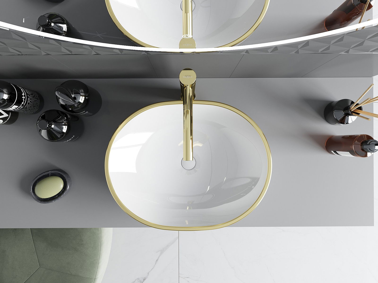 Mexen Viki praustuvo dubuo 48 x 35 cm, baltas/auksinis kraštas - 21054805