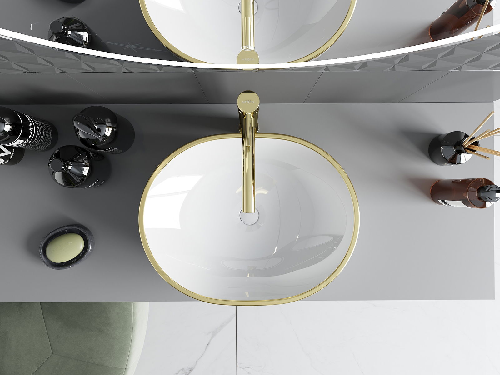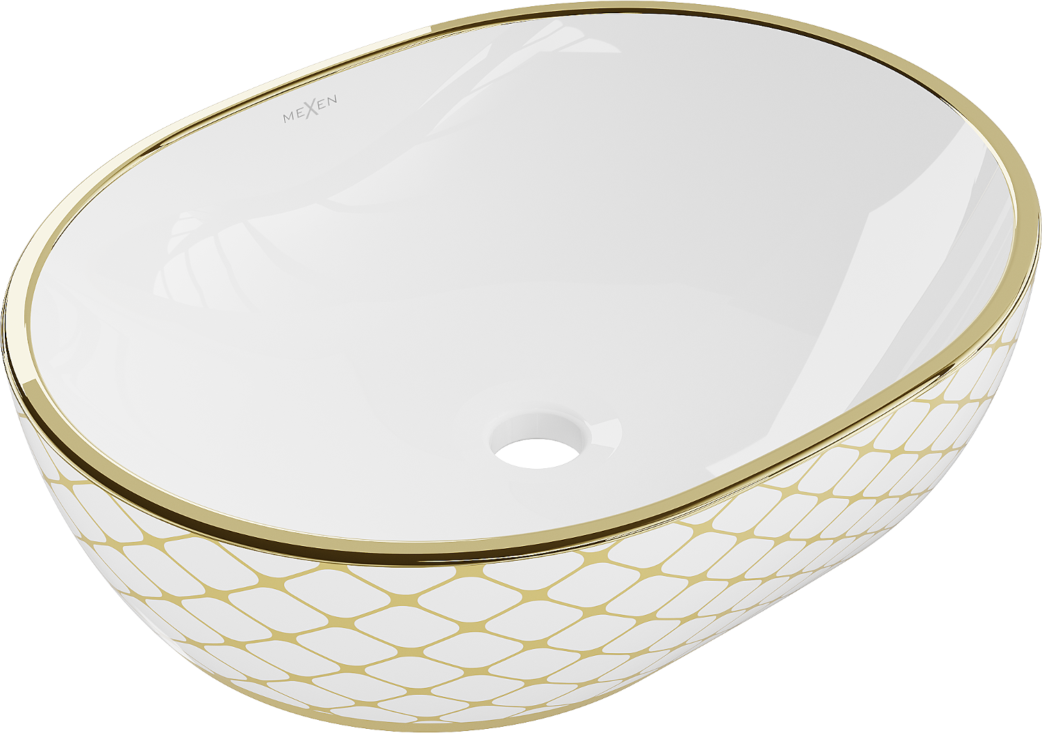 Mexen Viki stalviršio praustuvas 48 x 35 cm, baltas/auksinė langelių raštas - 21054809