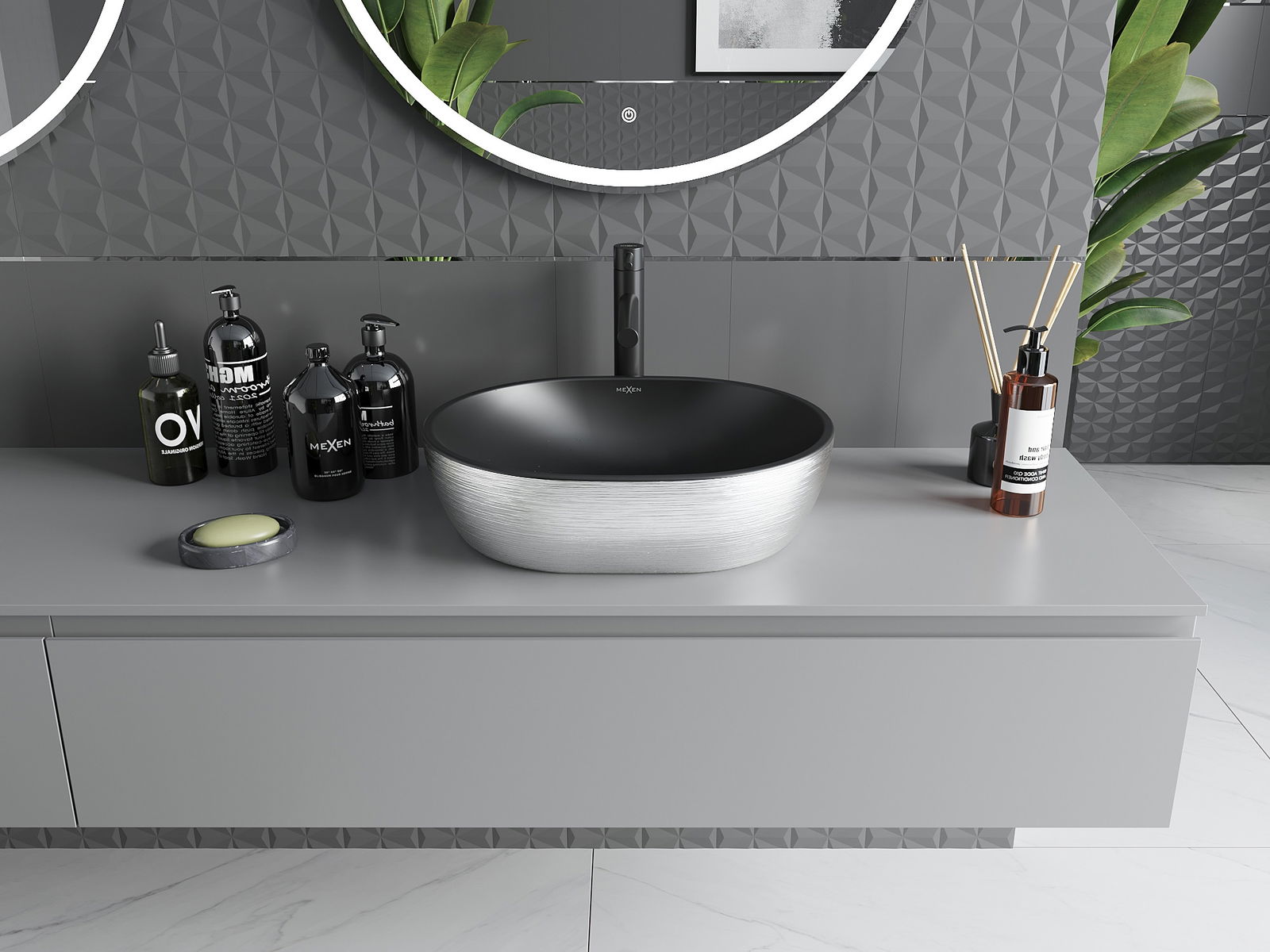 Stalviršinis praustuvas 48 x 35 cm elegantiško juodo matinio spalvos su sidabriniu rašto deriniu yra puikus stiliaus ir funkcionalumo derinys. Pagamintas iš aukštos kokybės sanitarinės keramikos, pasižymi apsauginiu sluoksniu, kuris užtikrina ilgaamžiškumą ir lengvą priežiūrą. Jo ovali forma ir skylės baterijoms bei persipylimui nebuvimas daro jį puikiu pasirinkimu modernioms vonios kambariams. Kompaktiniai matmenys 48x35 cm ir aukštis 14 cm leidžia lengvai derinti su įvairiomis interjero aranžuotėmis.